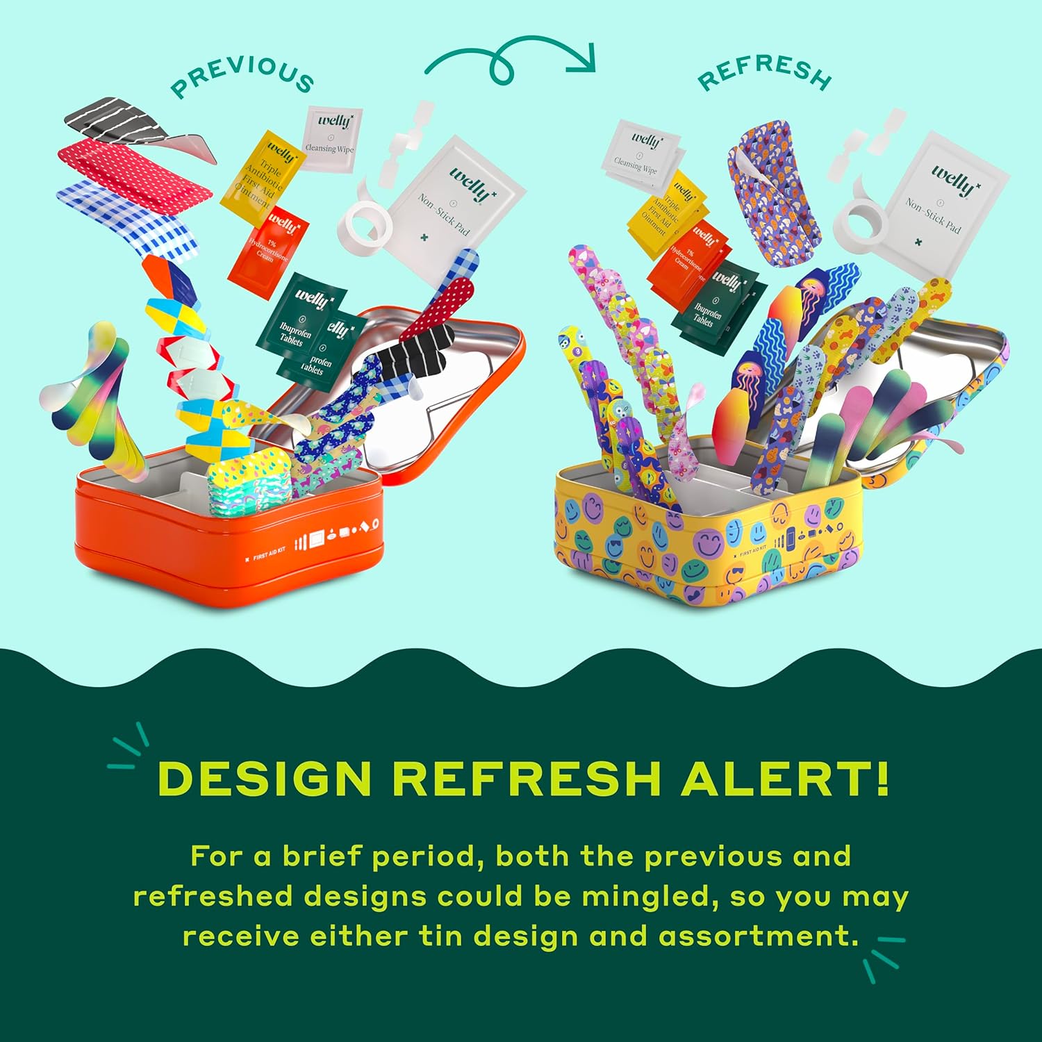 Welly First Aid Kit - Adhesive Flexible Fabric and Waterproof Bandages, Tape and Non-Stick Pads, Butterfly Strips, Single Use Ointments Triple Antibiotic and Hydrocortisone, and Ibuprofen - 130 Count