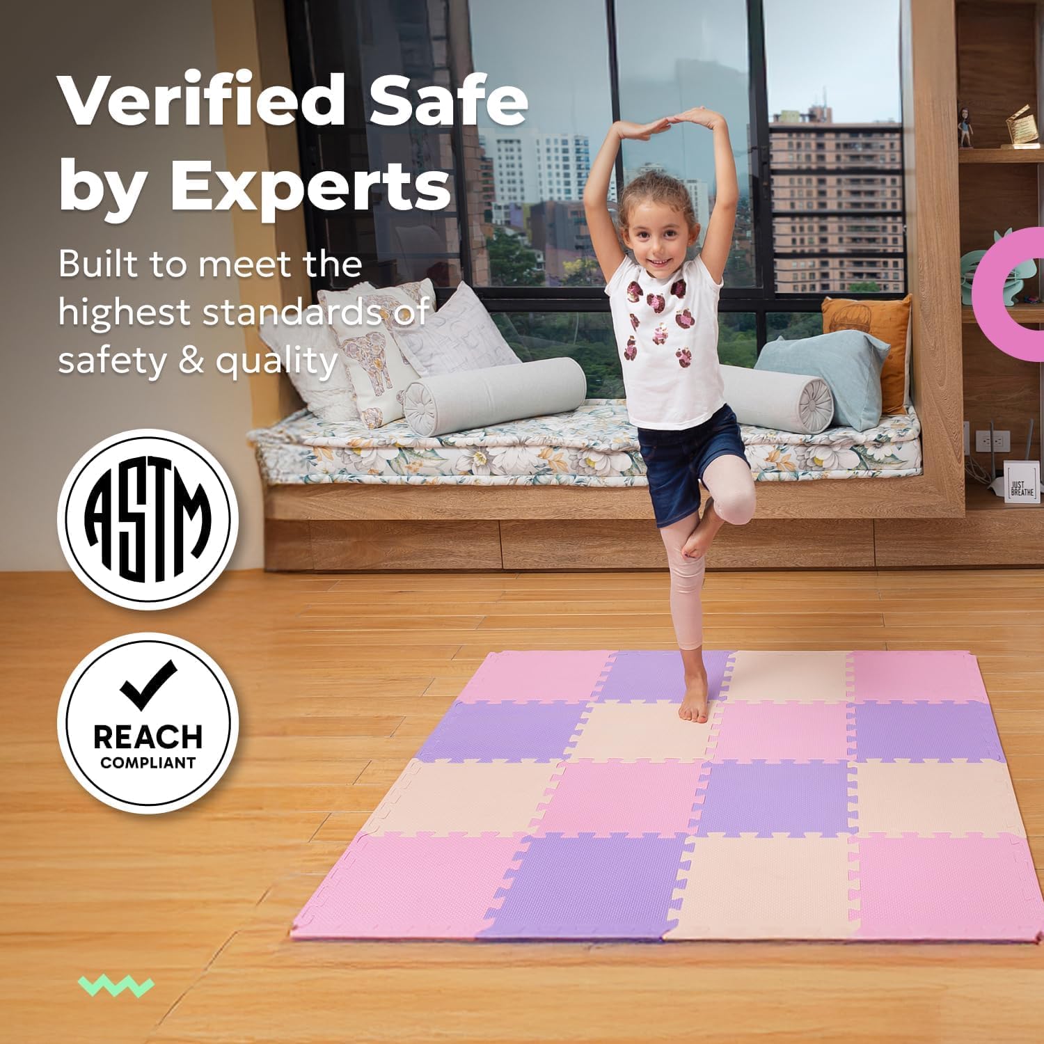 MioTetto Foam Floor Tiles for Kids - Non-Toxic Soft Comfortable Baby Play Mat, Thick Tummy Time Mat, Interlocking Foam Tiles for Development & Crawling, Soft Cushioned Play mat for Babies 6-12 Months