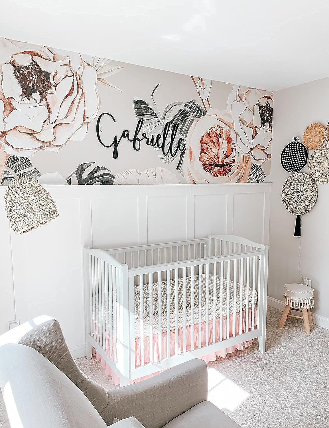 PINNKKU 4-Piece Crib Bedding Set for Boy & Girl, Includes Skirt, Blanket, Sheet & Diaper Bag, Floral, Standard Size