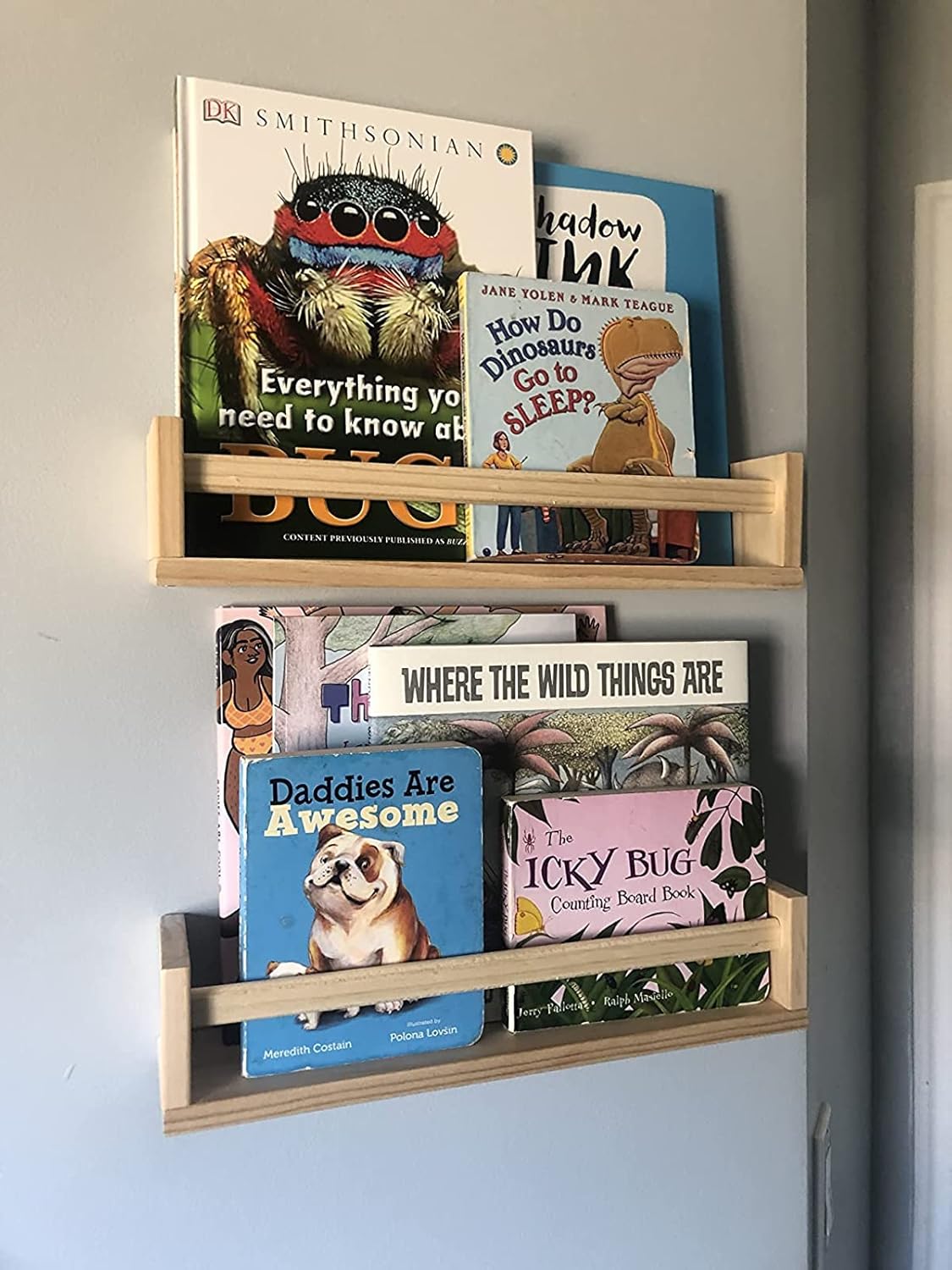- ♻️SOLID STORAGE – The nursery bookshelf made of high quality pine wood , this hard floating shelving is sturdy and dependable. These shelves can hold a whole row of books, toys and stuffed animals with no issue! The floating bookshelf are designed with style and functionality in mind. Great for bedrooms, kitchens, and bathrooms!