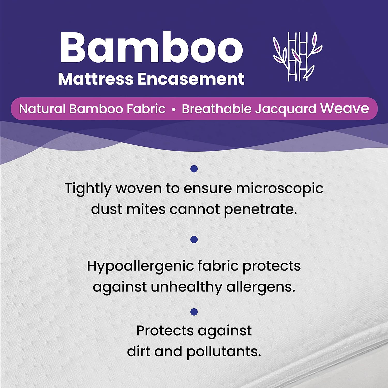 - PREMIUM PROTECTION: Our ultra-breathable viscose made from bamboo mattress encasement bed bug proof fabric completely surrounds, protects and seals the mattress on all 6 sides, so your mattress is entirely sealed in and out. All-natural hypoallergenic fabric is completely silent, with none of the crinkling sounds you get with a typical mattress protector. Enjoy a sleep experience you simply cannot get anywhere else.