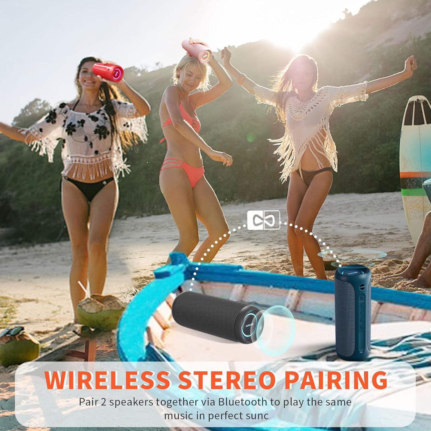 - WIRELESS STEREO SURROUND SOUND:The wireless speaker with Bluetooth supports TWS function, you can purchase two speakers at the same time to truly enjoy the stereo surround sound of a movie theater by pairing the TWS function.