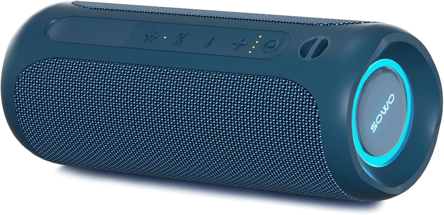 SOWO Portable Bluetooth Speaker, IPX7 Waterproof Wireless Bluetooth Speaker, Bassboom Technology, 25W Loud Stereo Sound, LED Light with TWS Pairing, 16H Playtime for Home and Outdoor -Blue