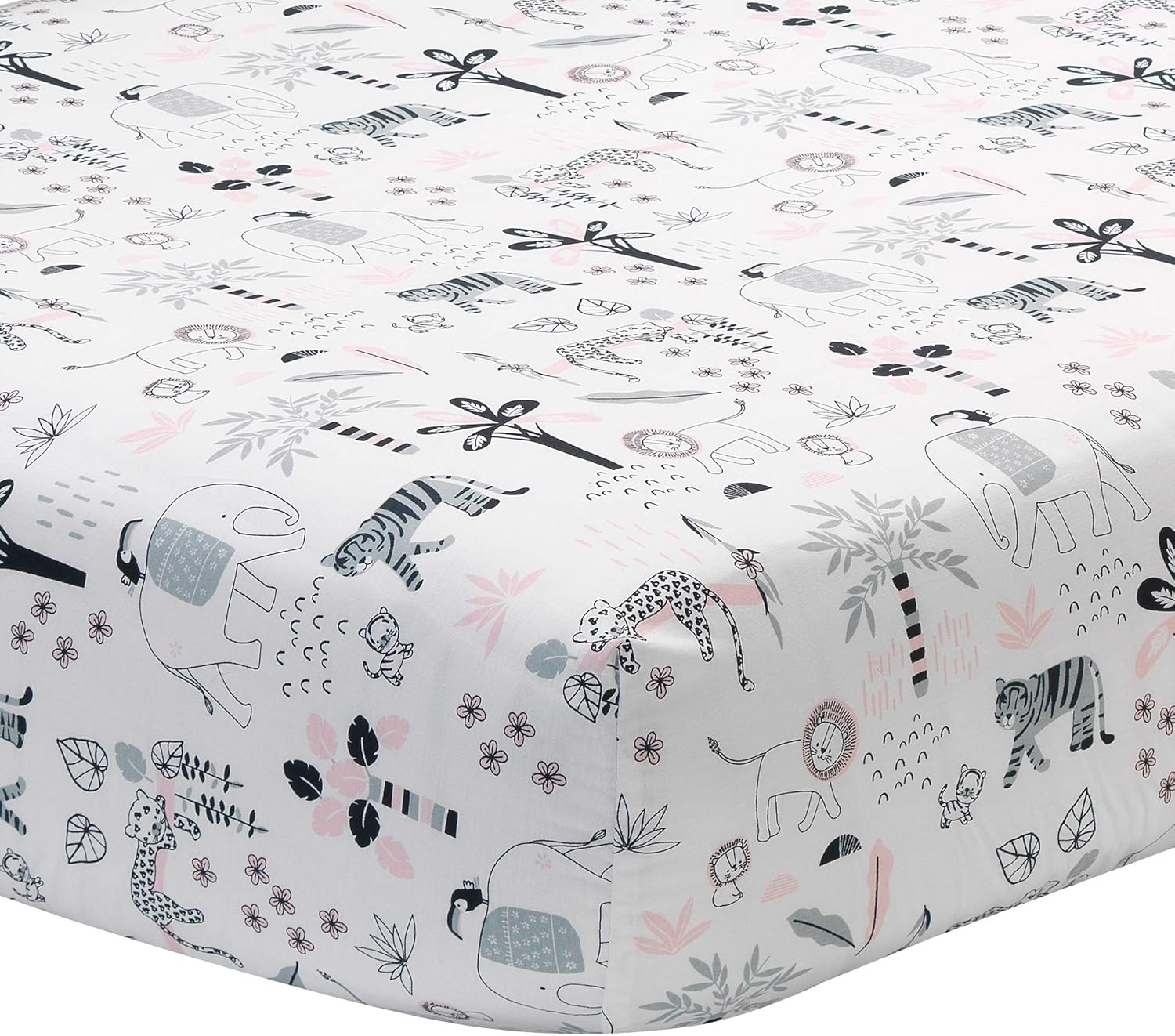 Lambs & Ivy Happy Jungle Pink/White Safari Nursery 5-Piece Crib Bedding Set