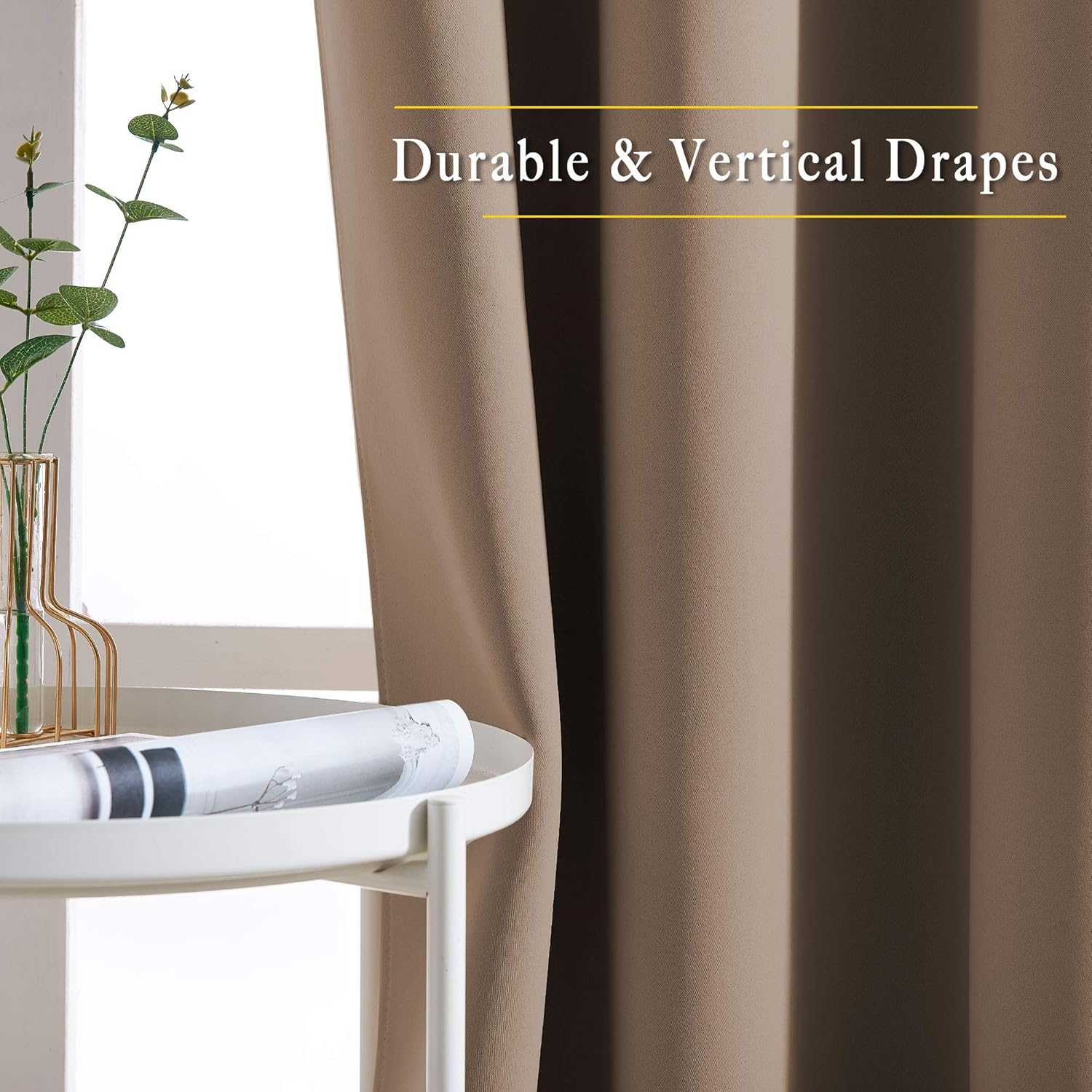 NICETOWN Kitchen Blackout Curtains and Drapes - Triple Weave Energy Saving Thermal Insulated Solid Grommet Blackout Panels for Patio (1 Pair, 66 inches by 90 Inch, Cappuccino)