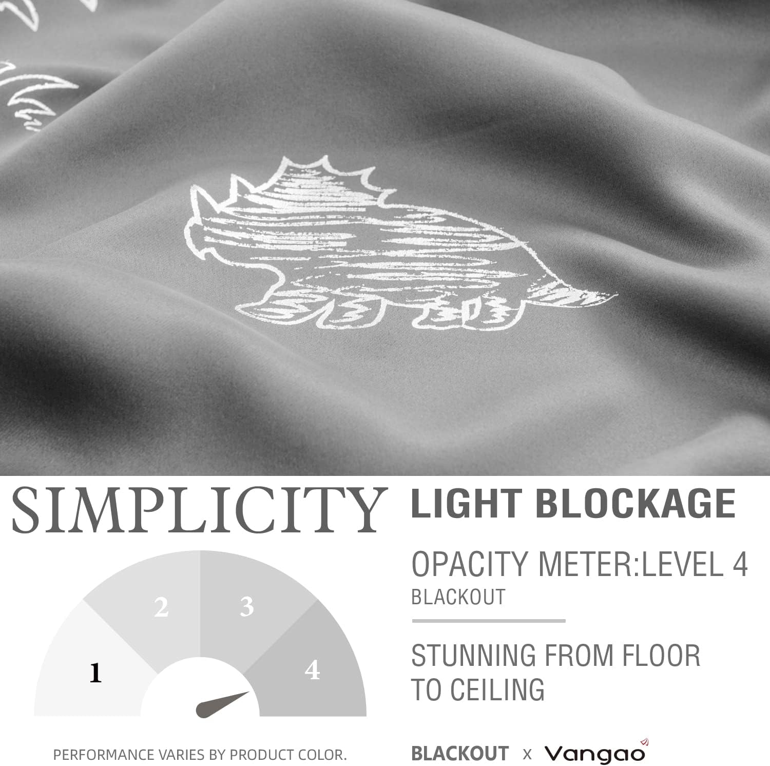 Vangao Grey Blackout Curtains Dinosaur Curtains for Boys Kids Nursery Girls Room Silver Dino Foil Print Thermal Insulated Grommet Top Window Drapes 63 Inches Length 2 Panels