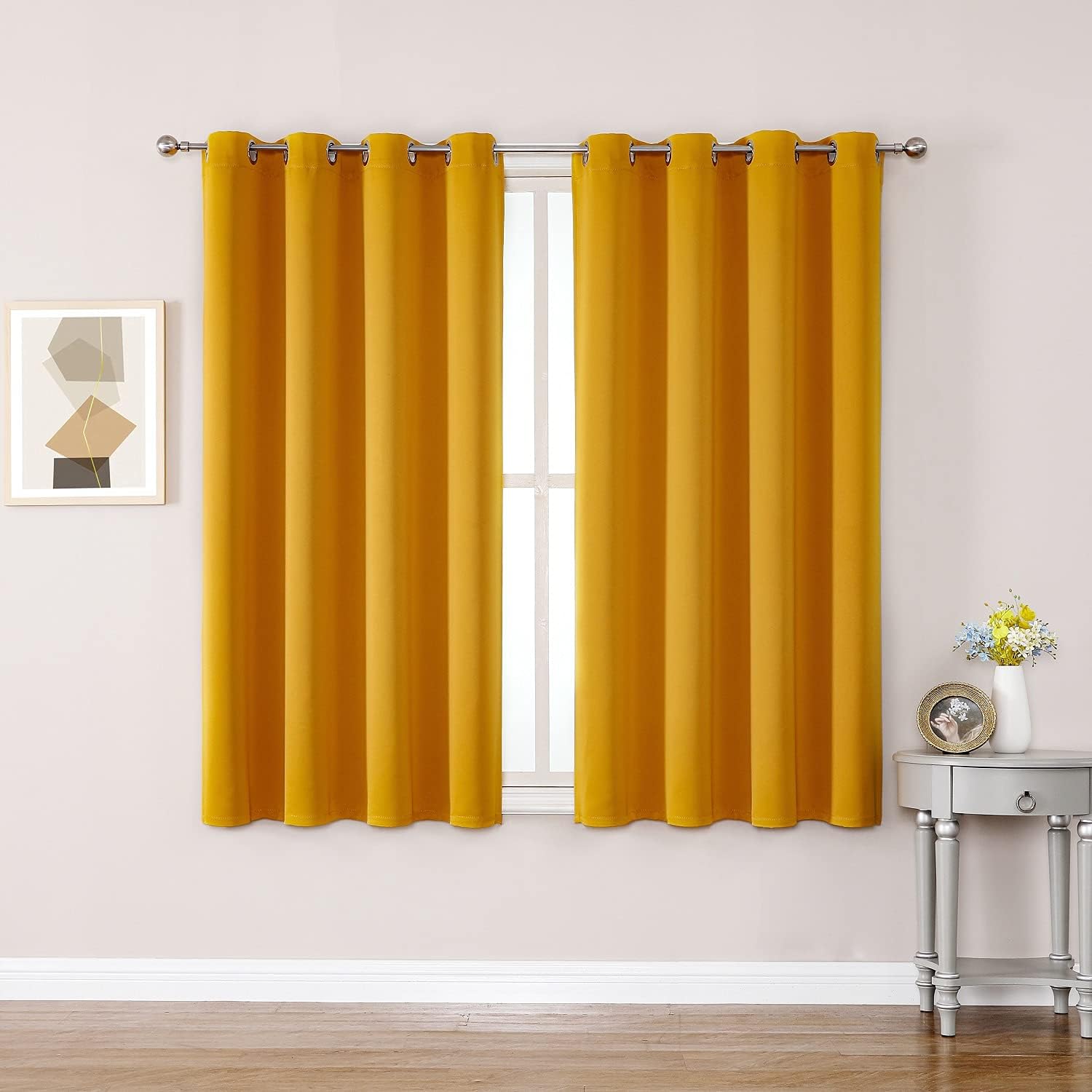 ChrisDowa Grommet Room Darkening Curtains for Bedroom and Living Room - 2 Panels Set Thermal Insulated Blackout Curtains (Mustard Yellow, 52W x 63L)