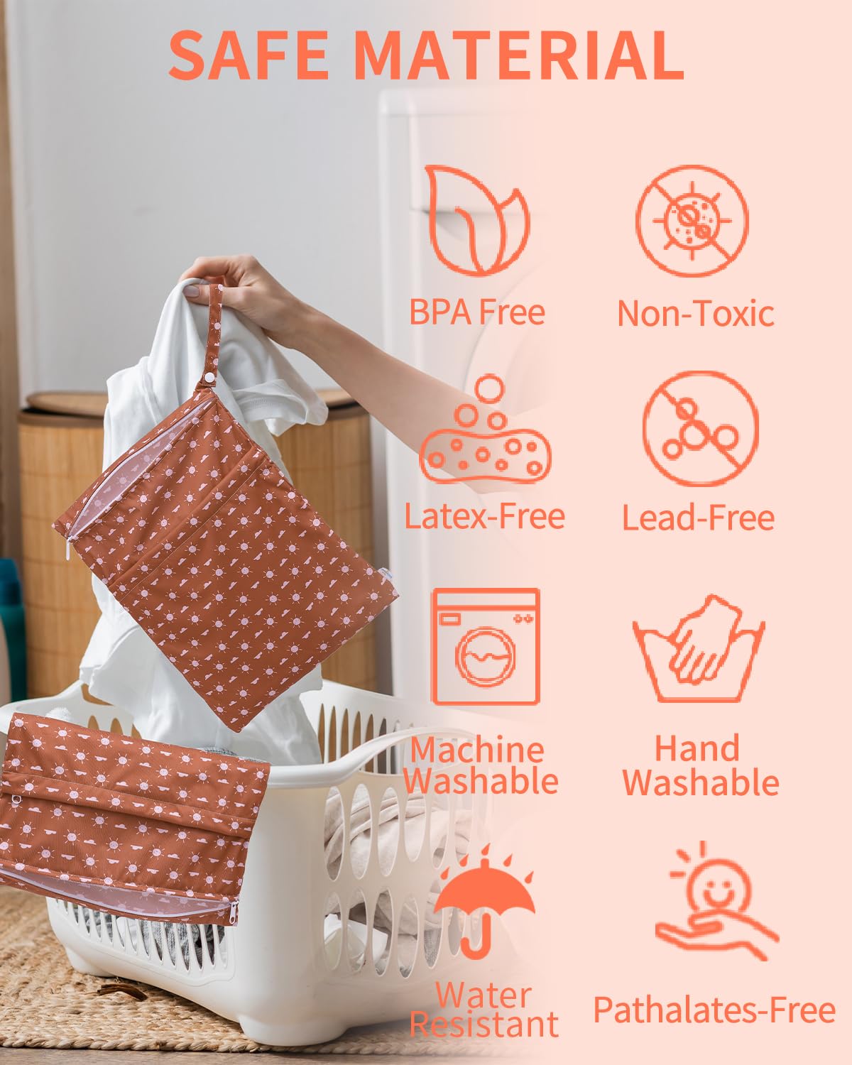 - Premium Quality & Water-Resistant: Babygoal wet bags are of high quality. The outer layer of wet bags are made of waterproof polyester and breathable TPU material. They are safe to preserve baby products, as they are completely free of dioxins, sodium polyacrylate and other chemicals, or contain any BPA, Phthalate, Latex or Lead as well.