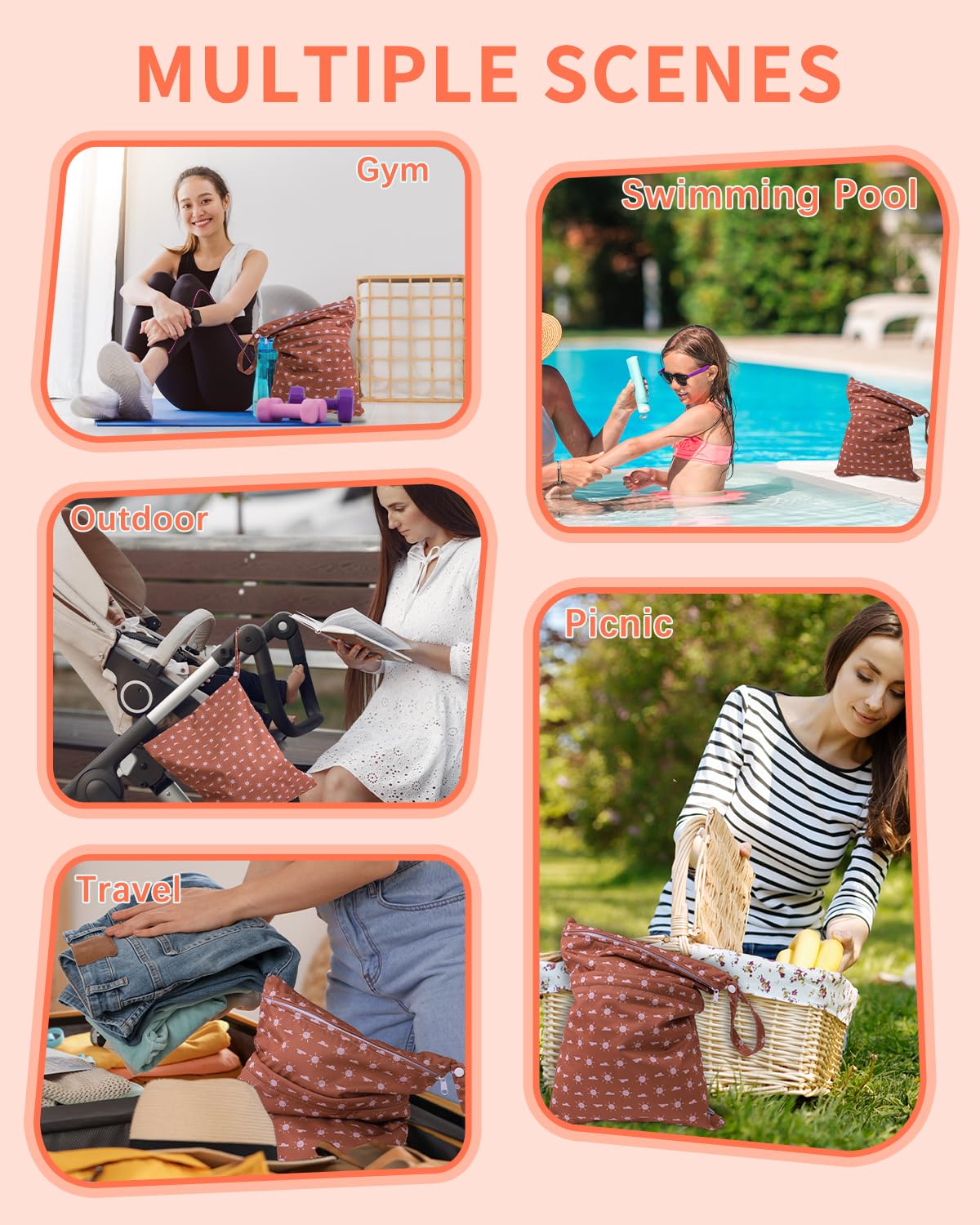 - Double-Pocket Design with Snap Handle: Each wet bag contains two pockets, which comes with two zip closures to ensure that nothing will drop out of the bag and better to keep the clean and dirty items separately. With the snap handle design, you can unbutton the haddle and easily hang the bag on the stroller or door knobs, towel rod ect. anywhere you want.