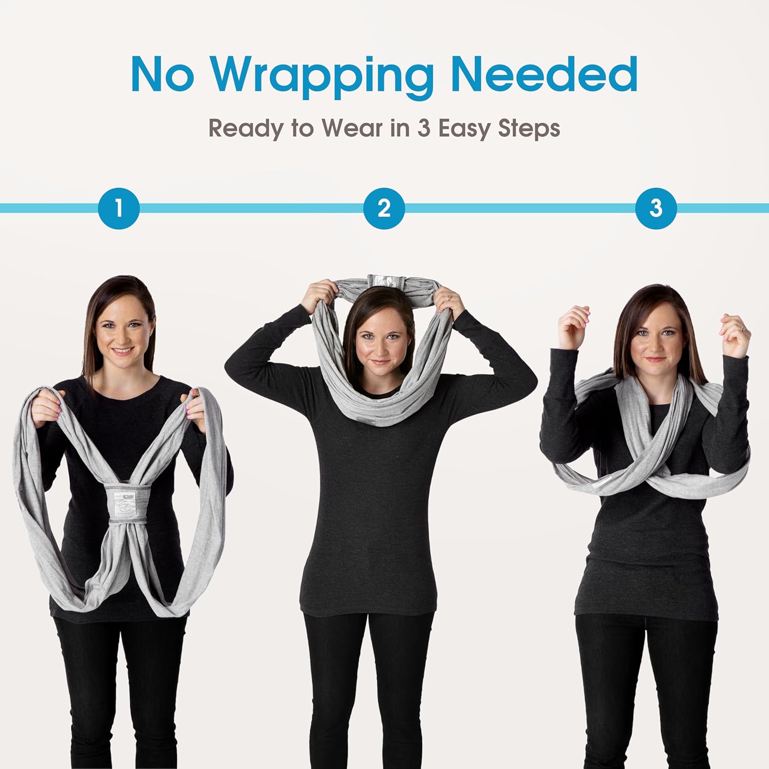 - [A WRAP WITHOUT the WRAPPING] The Baby K'tan Baby Carrier is quick and easy to wear. No complicated straps or buckles! This carrier is a SIMPLE, wrap-style carrier that is pre-wrapped and sized for the parent, making it READY-TO-WEAR right out of the box. No learning curve. This carrier combines the benefits of a sling, wrap, and buckled carrier all into one, without any complicated wrapping or buckling! No rings, belts, buckles or excess fabric!