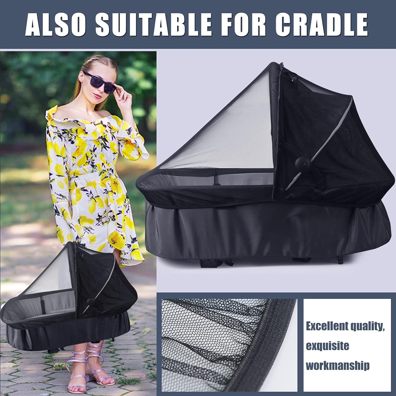 - REMIUM DURABLE MATERIAL - This stroller netting is made of premuim polyester with breathable fabric,durable and lasting, allows for air flow and circulation to keep the baby comfortable and cool. No deet or any other chemical repellents.