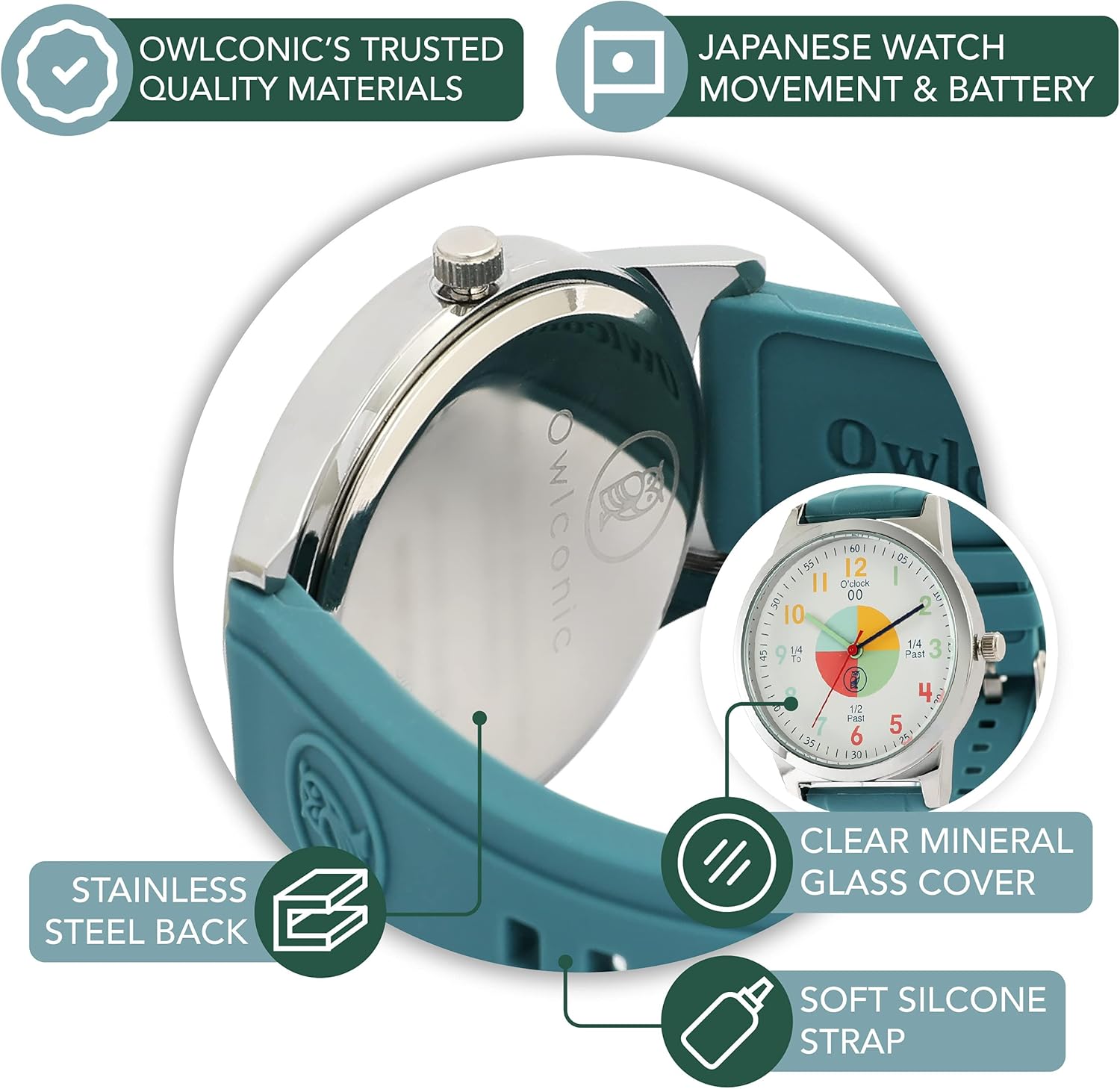 - TRUSTED: Owlconic's quality and design is perfect to help watches for kids 8-12 in learning to tell time. Can be paired with Owlconic's Time Teaching Clock for a full understanding of time.