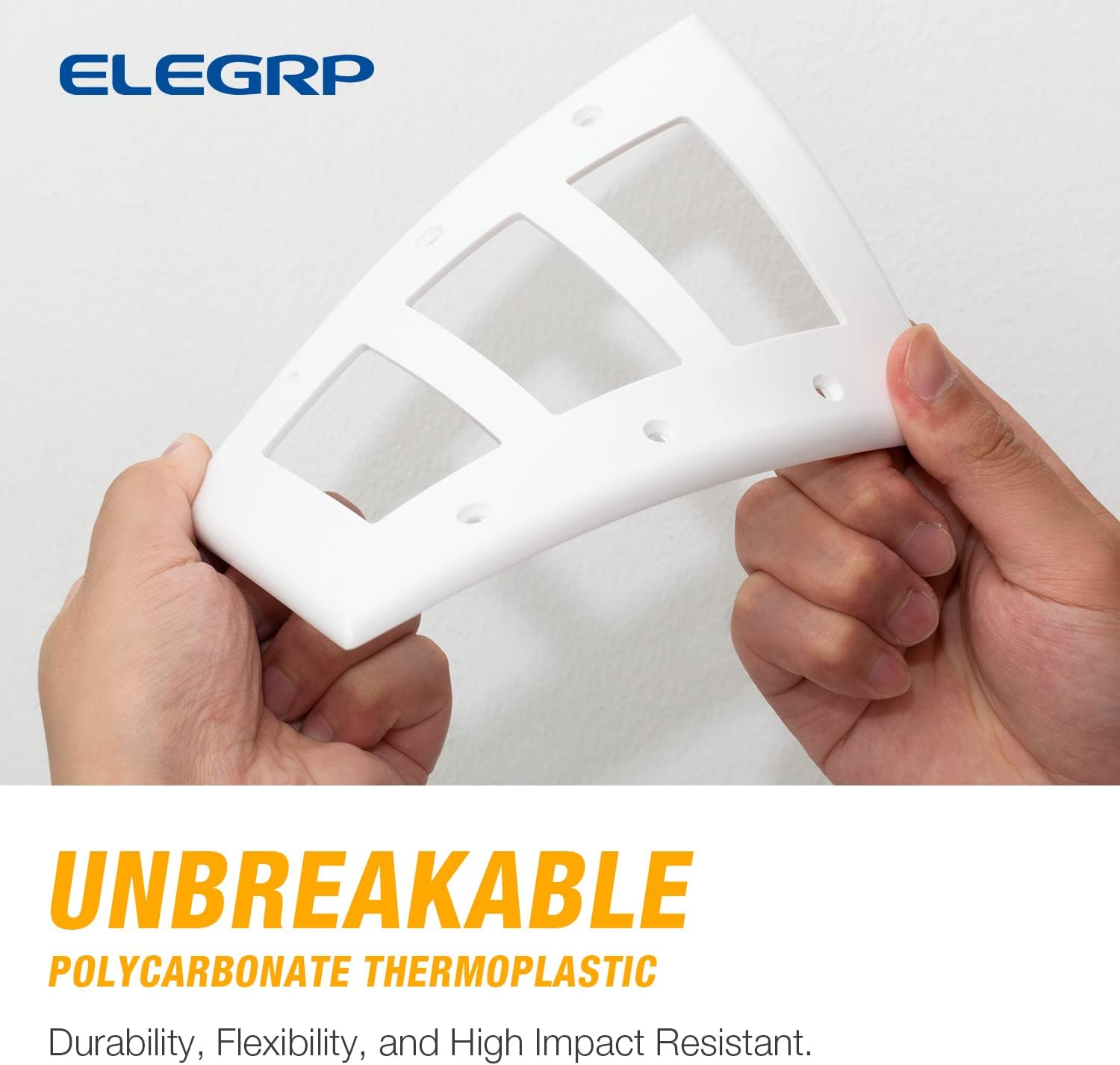 ELEGRP 3-Gang Decorative Wall Plates, Mid-Size 4.88" H x 6.75" L Unbreakable Thermoplastic Faceplate Cover for Decorator Receptacle Outlet Switch, UL Listed (10 Pack, Glossy White)