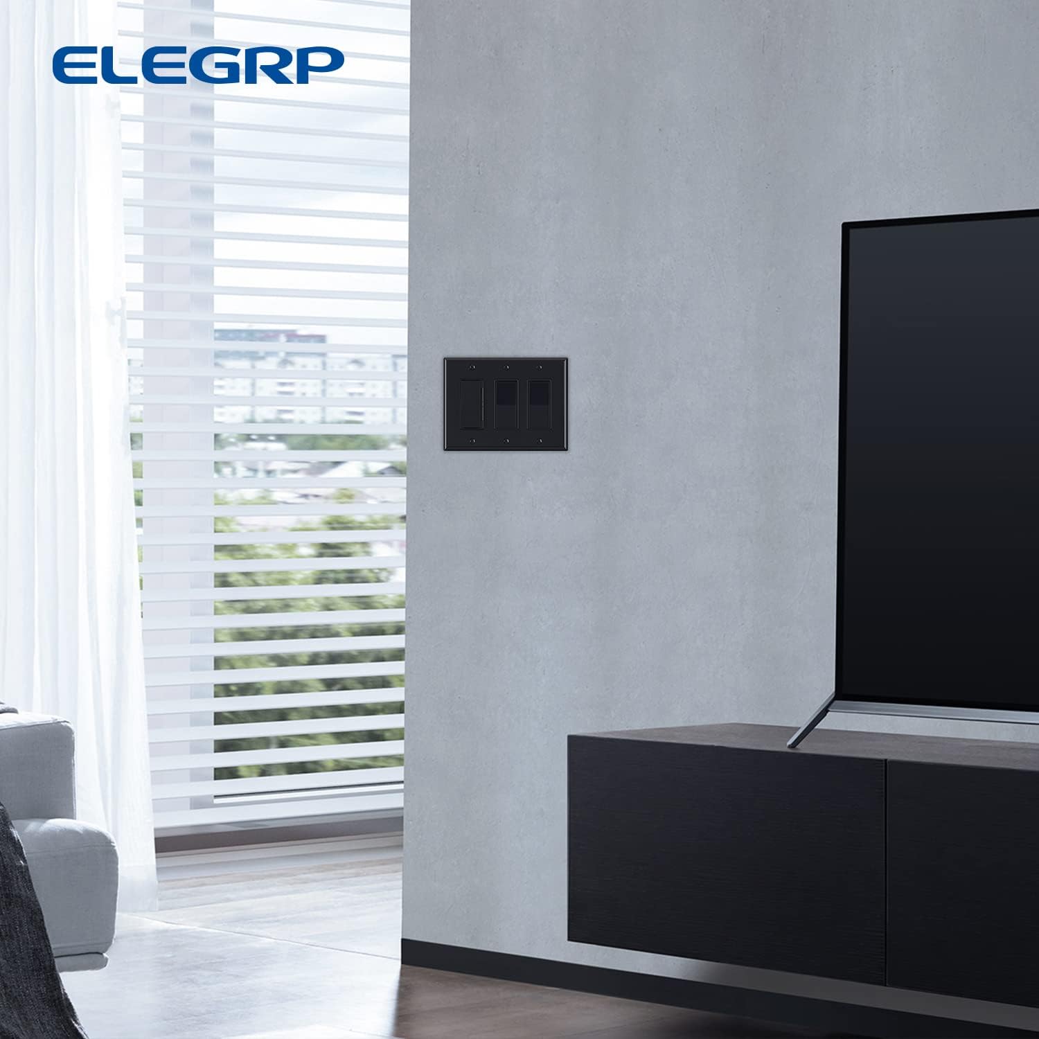 ELEGRP 3-Gang Decorative Wall Plates, Mid-Size 4.88" H x 6.75" L Unbreakable Thermoplastic Faceplate Cover for Decorator Receptacle Outlet Switch, UL Listed (10 Pack, Glossy Black)