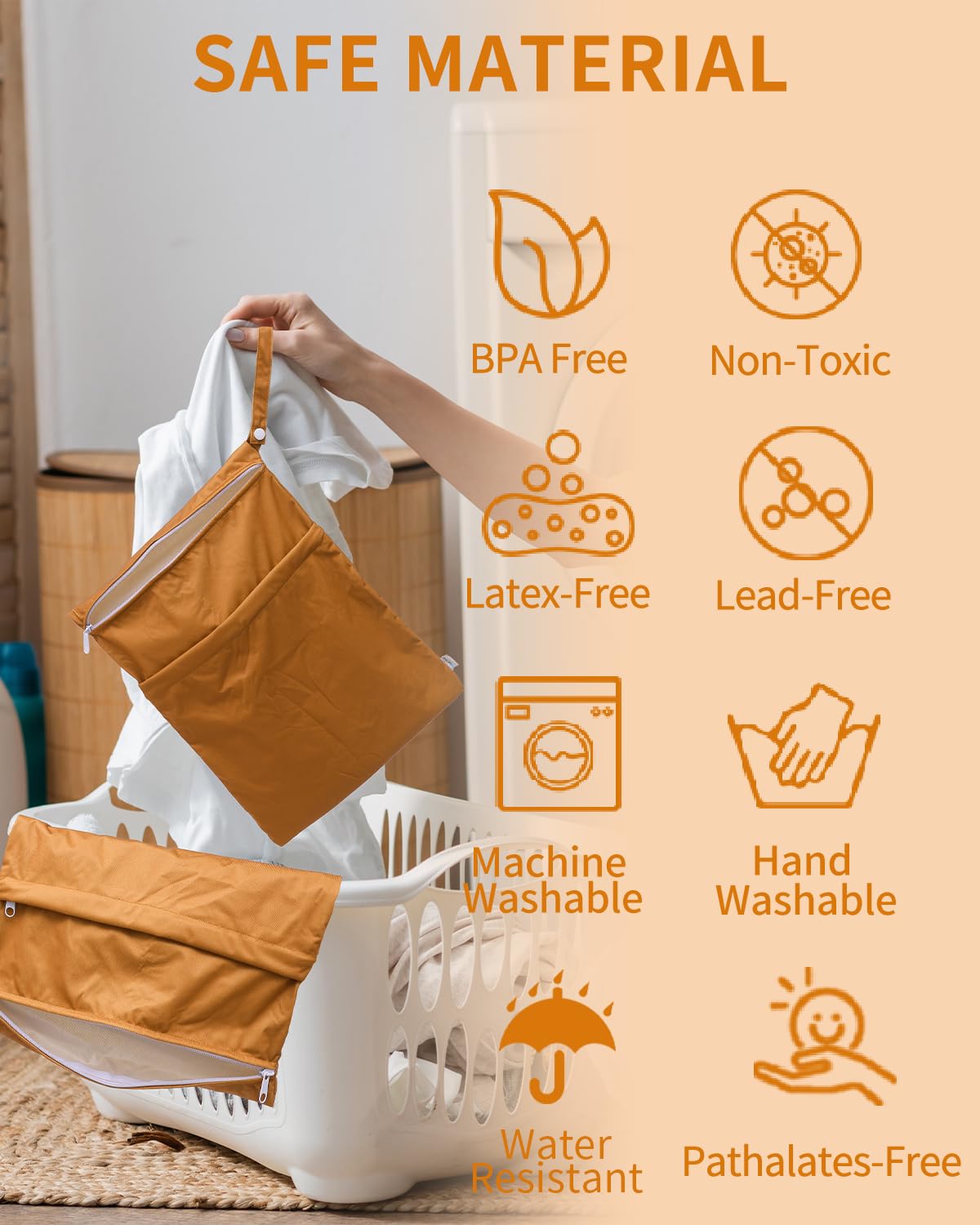 - Premium Quality & Water-Resistant: Babygoal wet bags are of high quality. The outer layer of wet bags are made of waterproof polyester and breathable TPU material. They are safe to preserve baby products, as they are completely free of dioxins, sodium polyacrylate and other chemicals, or contain any BPA, Phthalate, Latex or Lead as well.
