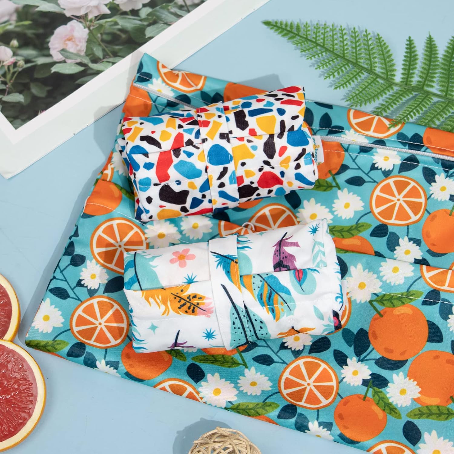 - Double-Pocket Design with Snap Handle: Each wet bag contains two pockets, which comes with two zip closures to ensure that nothing will drop out of the bag and better to keep the clean and dirty items separately. With the snap handle design, you can unbutton the haddle and easily hang the bag on the stroller or door knobs, towel rod ect. anywhere you want.