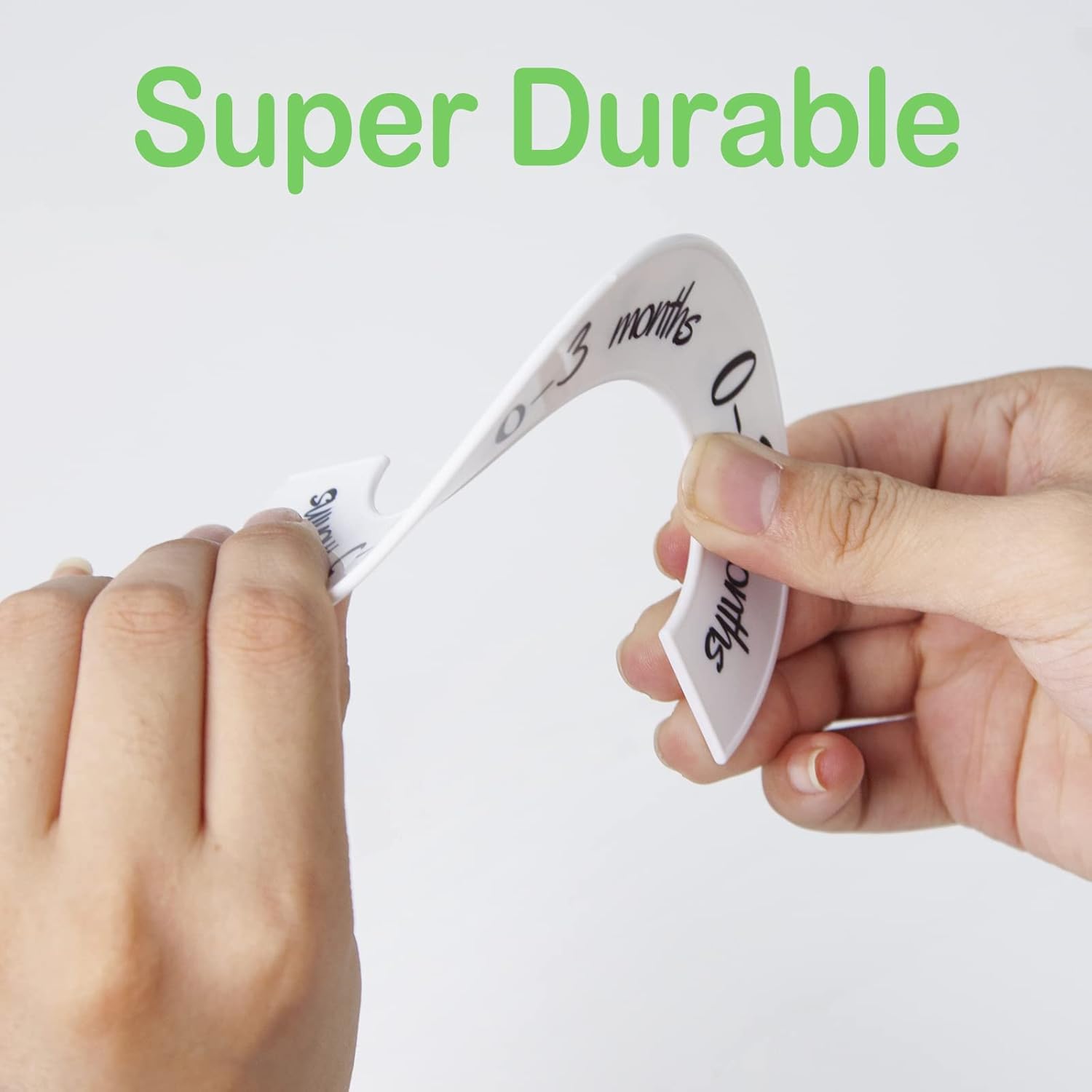 - 【Double Printed】:The Baby Closet Dividers are double printed big words all over the plate so that parents can easily see it clearly even the Baby Closet Dividers are not staying upright. In addition, printed word will not fade but the sticker will fall down
