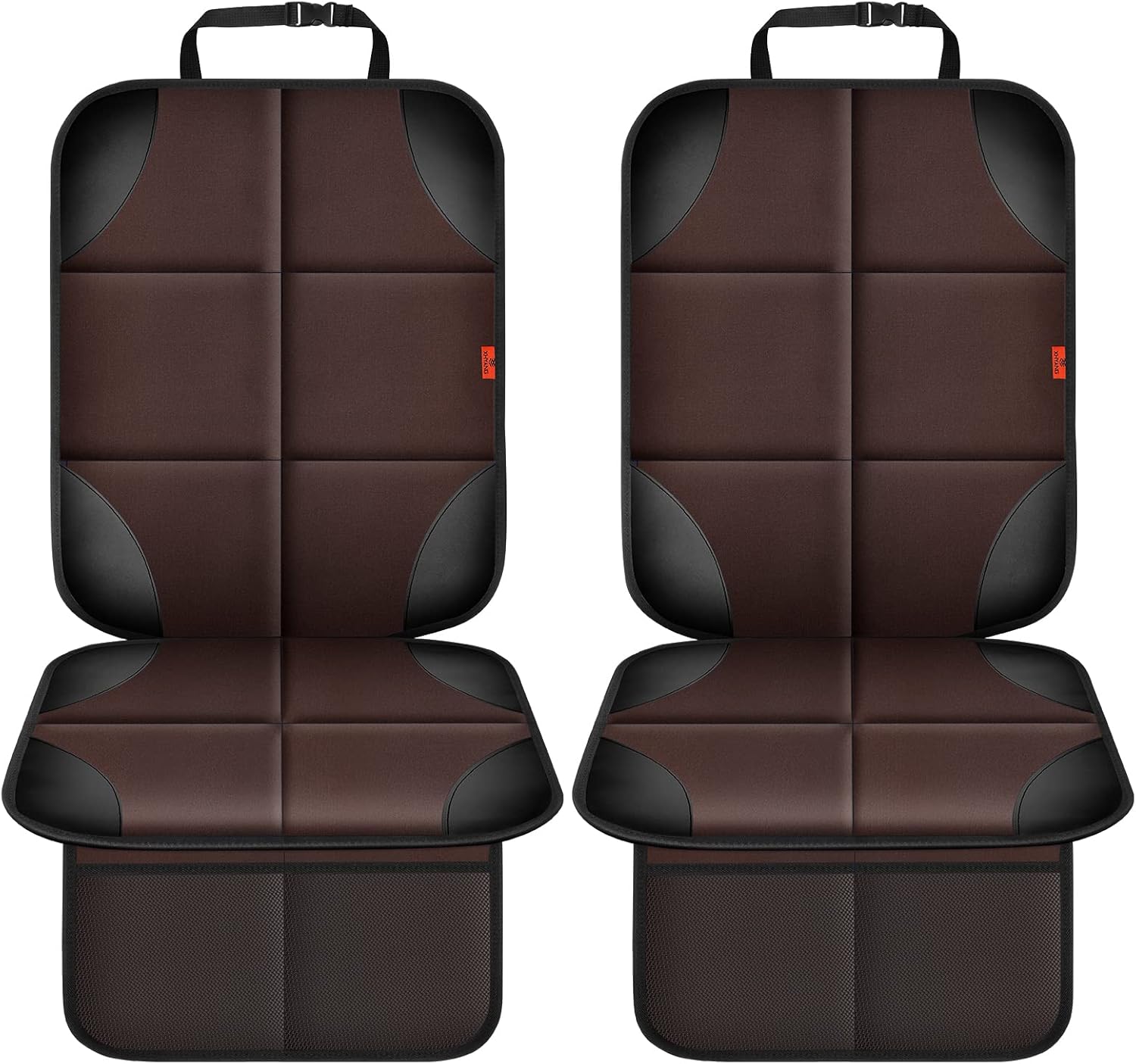 Car Seat Protector 2 Pack Car Seat Cushion Mat Thickest Padding,Waterproof 600D Fabric Car Seat Covers for Non-Slip Backing Mesh Pockets for Baby and Pet (Brown, 2 Pack)