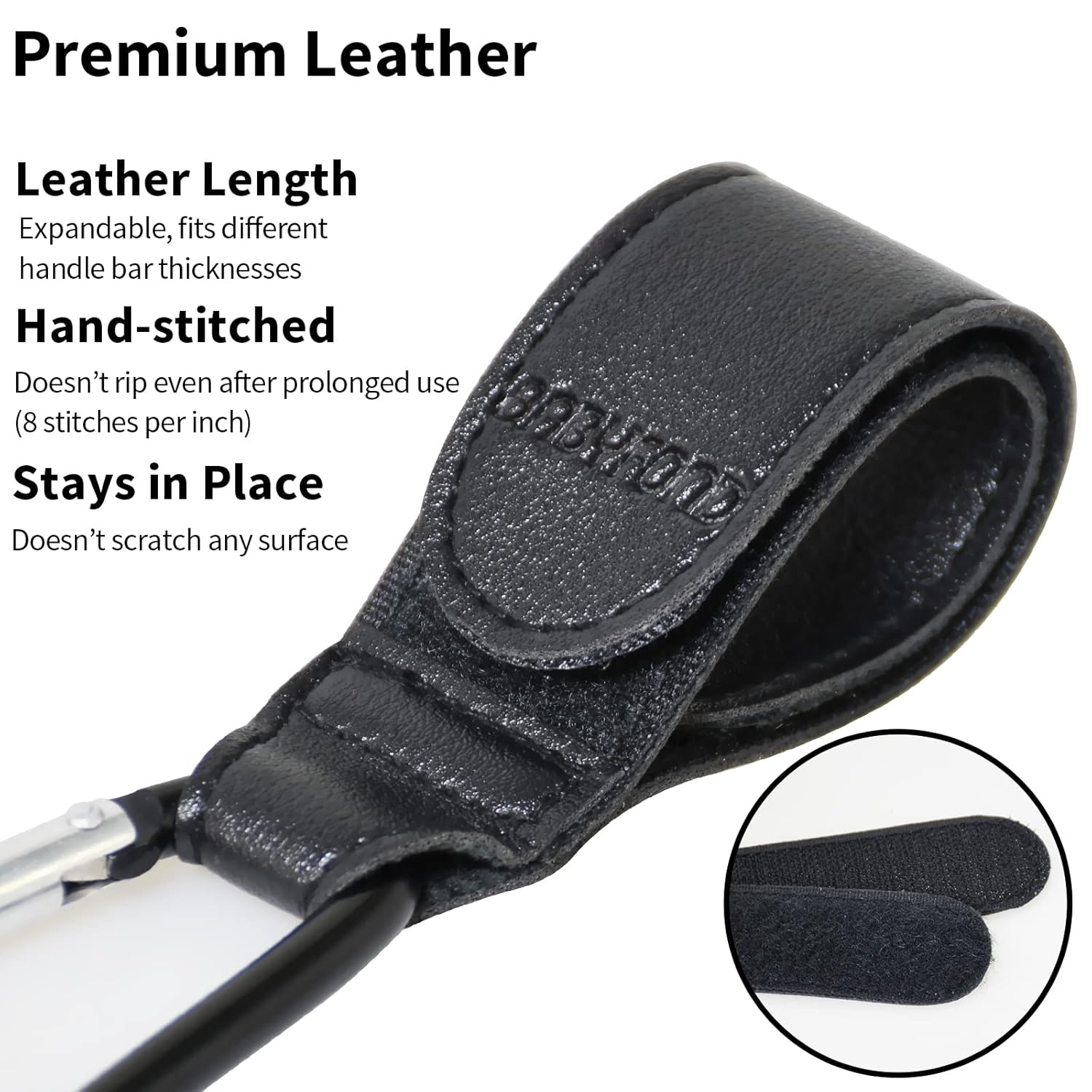 Stroller Hooks for Hanging, 2 PCS Durable Leather Style Stroller Clip Straps, Baby Stroller Hooks for Diaper Bags Grocery Shopping Bags, Mommy Hook for Stroller (Black)