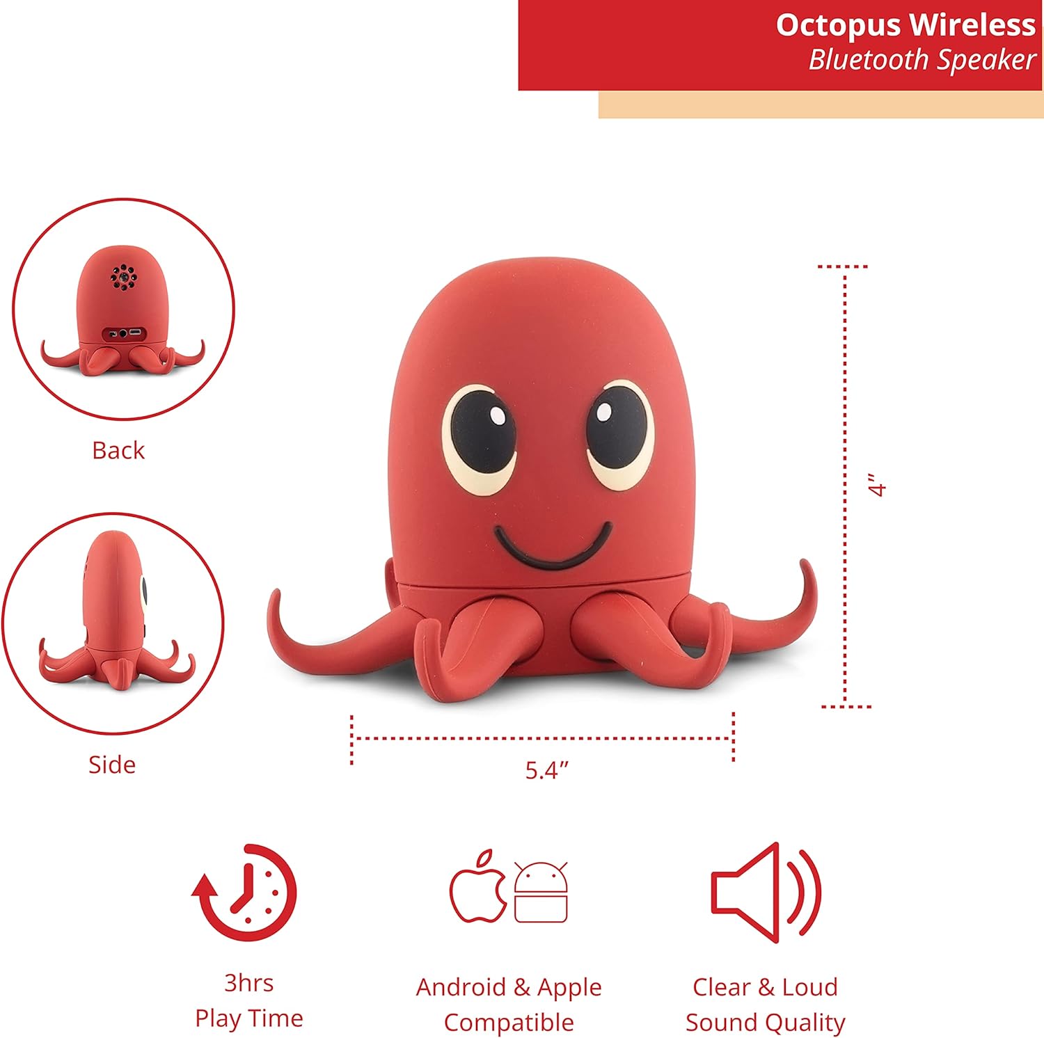Octopus Bluetooth Wireless Speaker - Bluetooth Speaker for Kids - Portable Bluetooth Speaker in Many Fun Designs - Compatible with iPhone and Android Devices