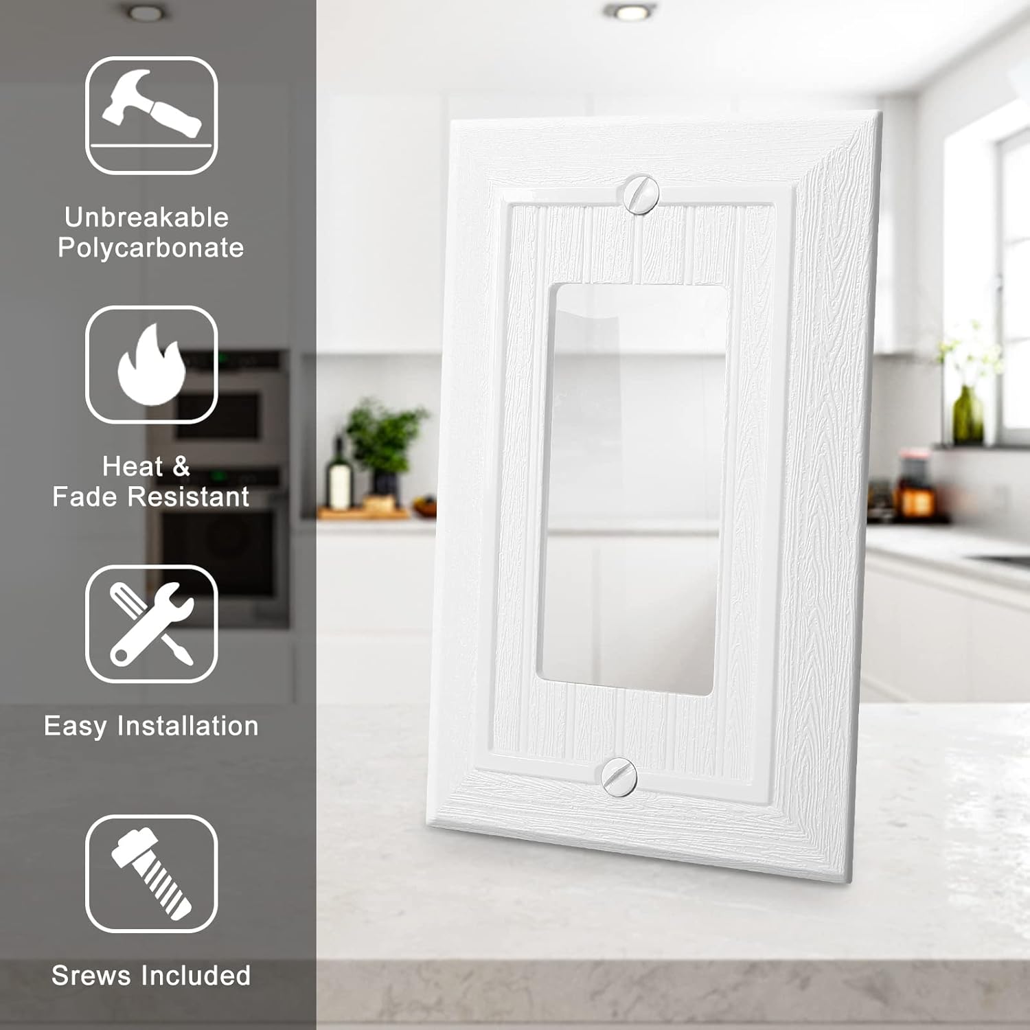 - ✔The white finish coordinates with white outlets, switches, and trim for a bright, clean look. add a warm farmhouse feel to any house, traditional cottage or even garage