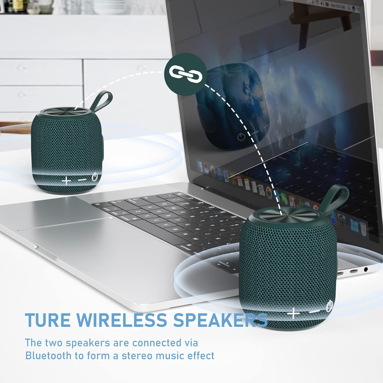 - 🌞【360°HD Surround Sound】: Portable Bluetooth speakers has shocking rich and large volume without voice break. Two speakers connect wirelessly combined to 10W high-quality speaker 360° all around sound effect(single speaker 5W). High-frequency is transparent and bright sound, medium-frequency is clear and clean and low-frequency reaches pretty low but powerfull with a full sound. It offers a rich sound and an enhanced bass that goes far beyond its size.