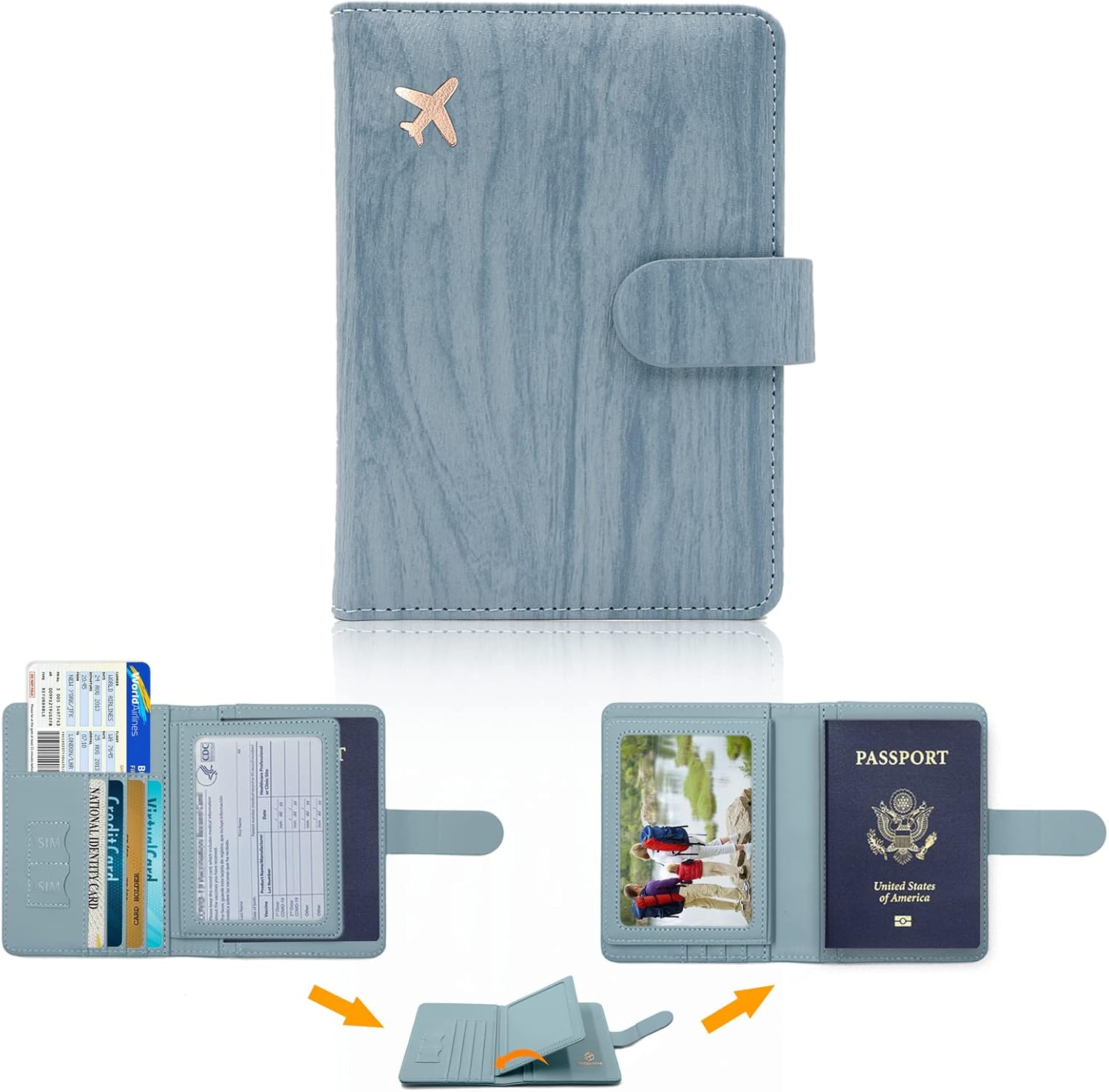 - 【Beautiful Combo Design】Our passport holder combo has 2 clear plastic slot and 1 passport holder slot to combine our passport,air tickets and some cards,and the other clear plastic slot to hold some important documents such as our ID card or driver's licenses which can ensure that we do not forget to take, or even our family portrait.