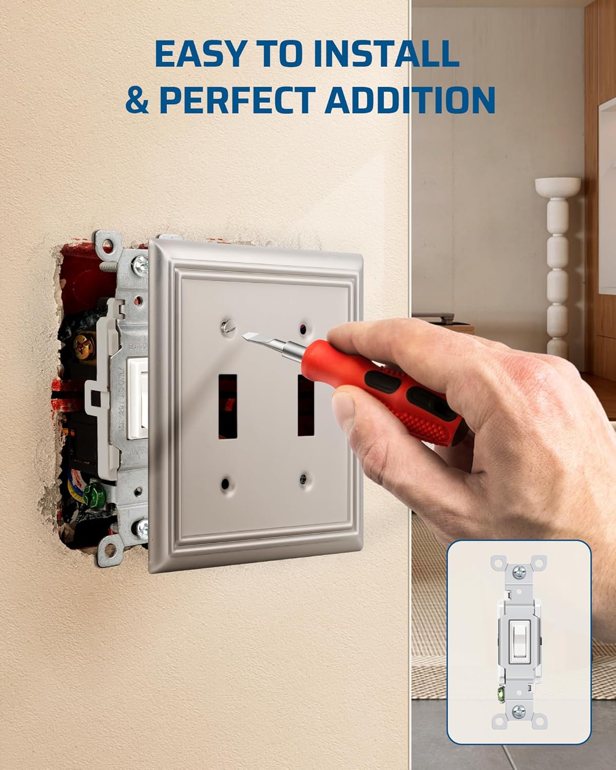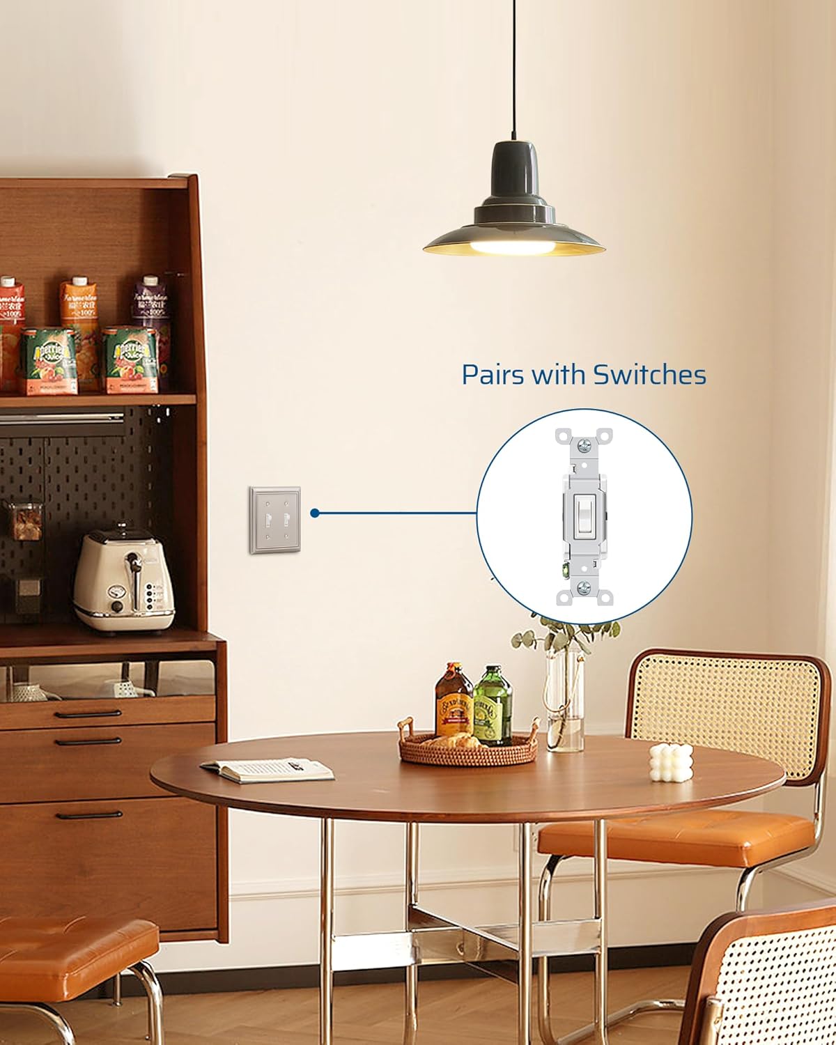 - 【Wide Application】The brushed nickel wall plates match in various formats, can be widely used in dimmer, toggle switch, outlet receptacle, GFCI outlets etc.