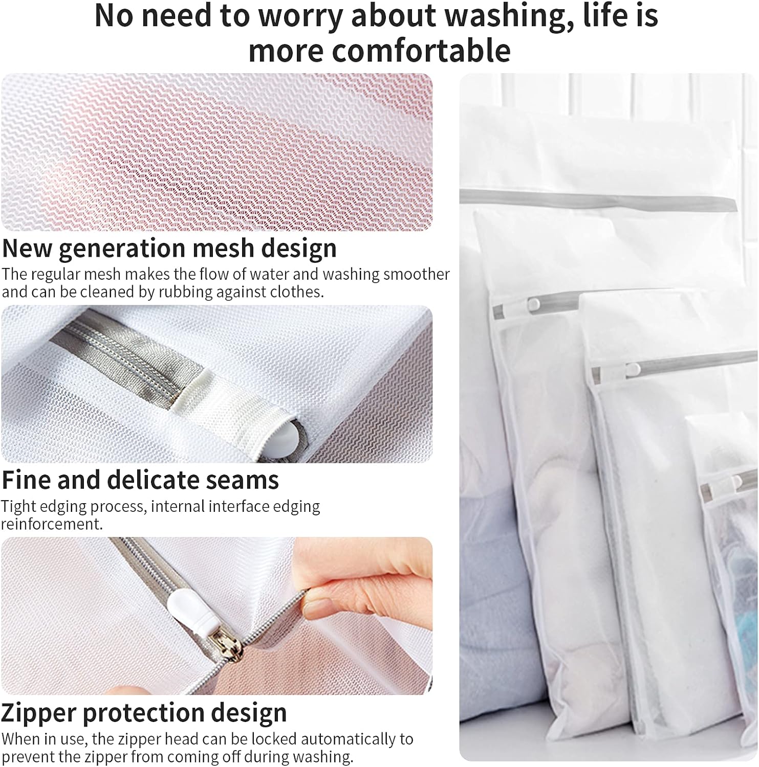 - 【New upgrade mesh design】 The mesh washing bag is made of durable polyester. The regular mesh makes the flow of water and washing smoother and can be cleaned by rubbing against clothes. It can protect your clothes well without affecting the washing of the clothes.