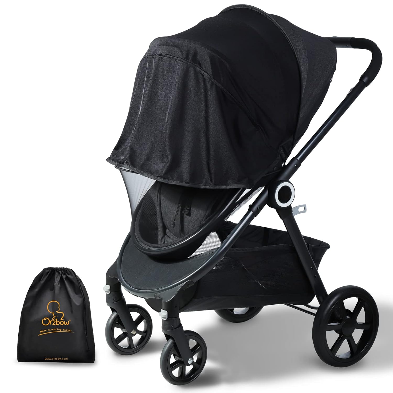 Orzbow 2-in-1 Baby Mosquito Net with UPF50+ Sunshade for Stroller, Breathable Stroller Mosquito Netting Privacy Cover with Two-Way Zipper & Storage Bag for Bassinet, Carrycot & Car Seat, Black