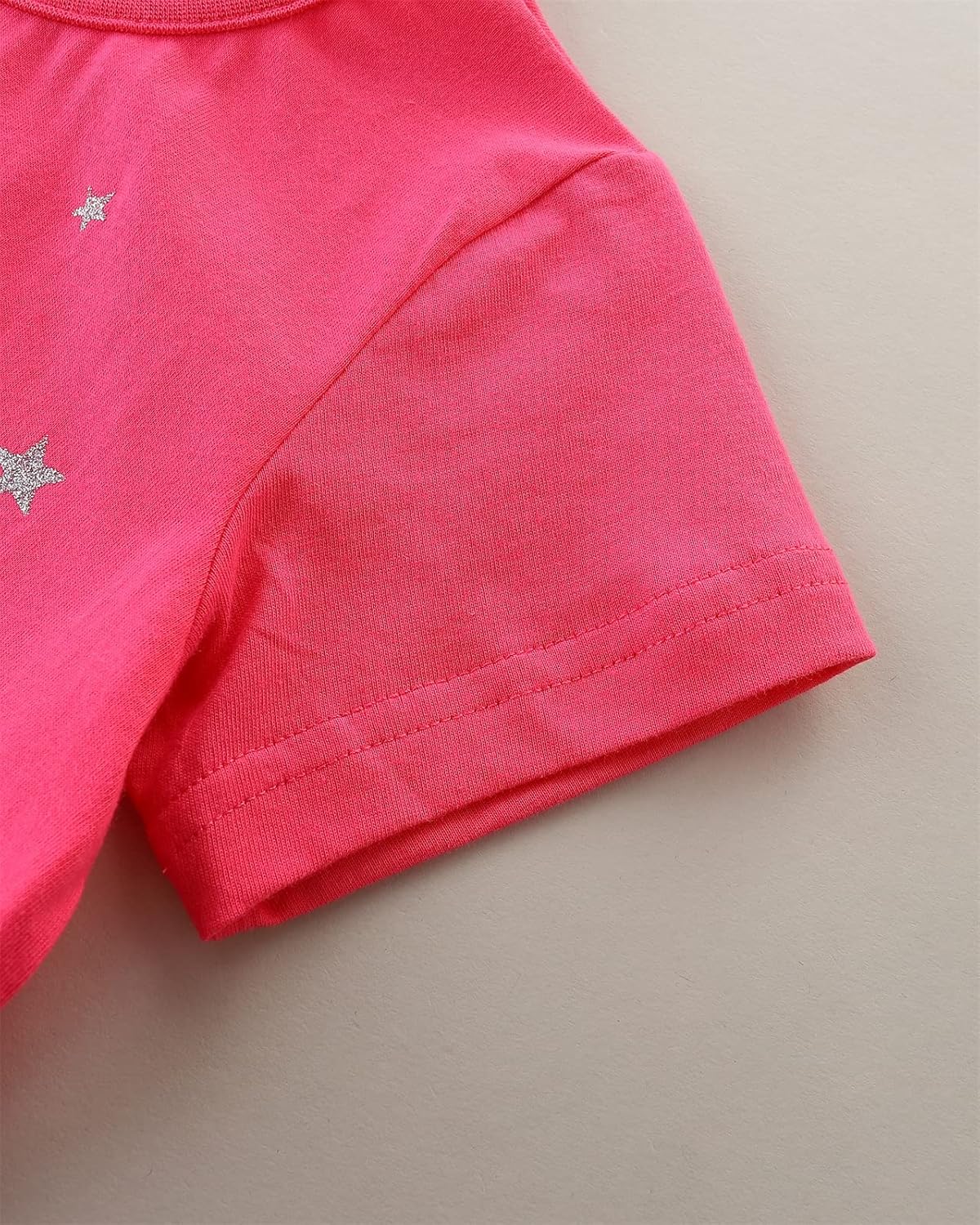 HILEELANG Girls' Tees Ruffle Short Sleeve T-Shirt Cotton Casual Graphic Summer Crewneck Tunic Tops