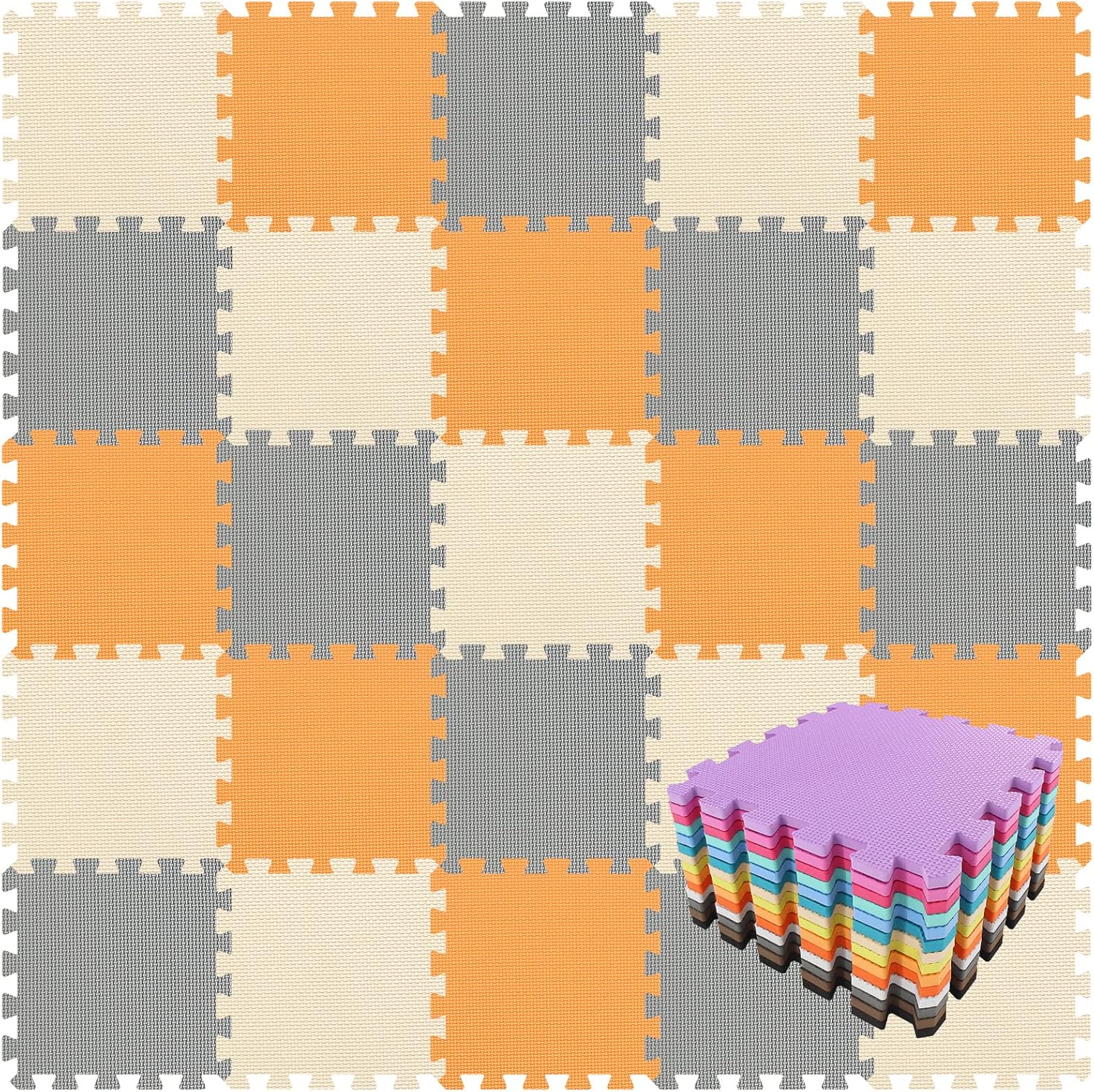 qqpp EVA Rubber 18 Tiles Interlocking Puzzle Foam Floor Mats - Baby Play Mat for Playing | Exercise Mat for Home Workout. Orange, Beige, Gray. QC-BJLb18N