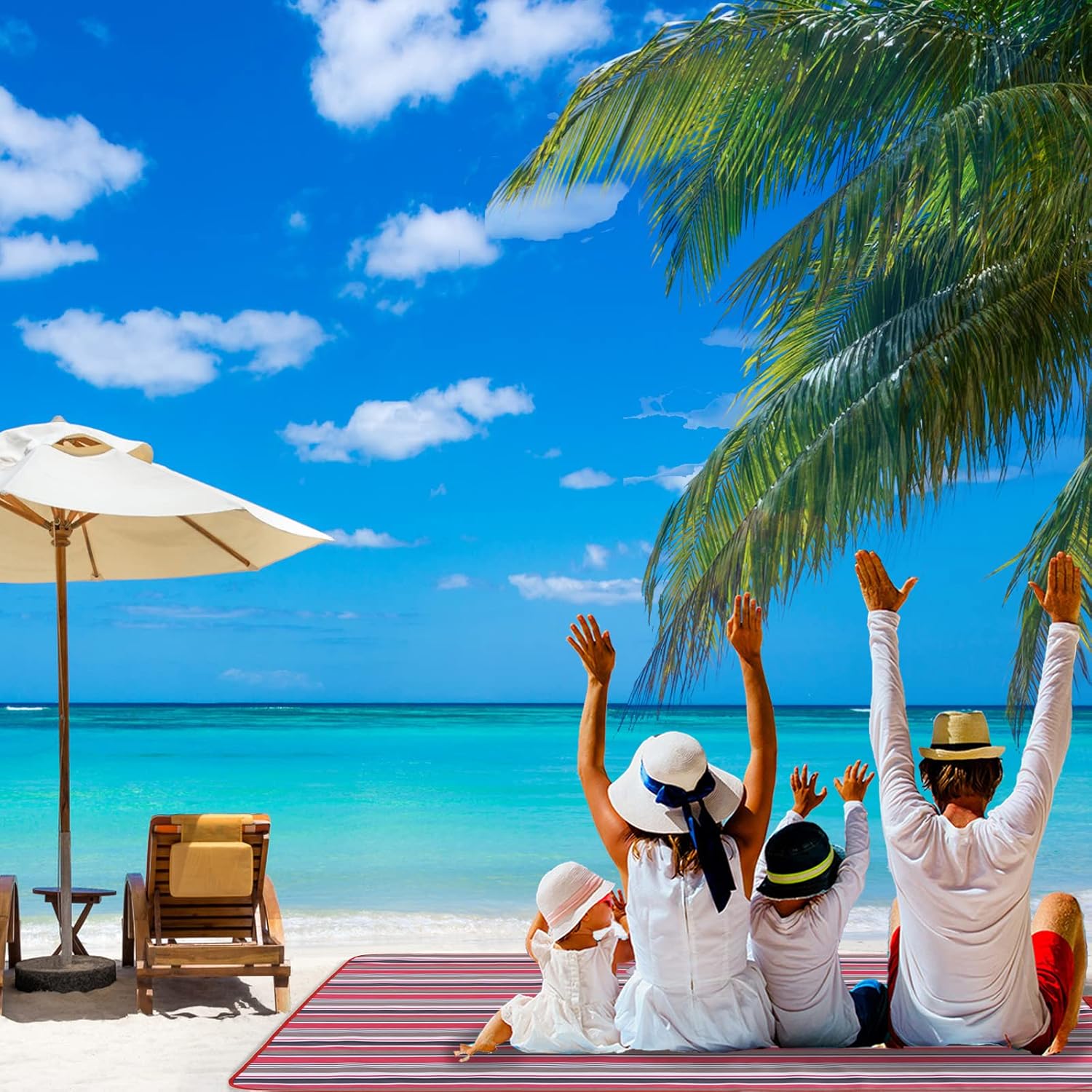 Beach Blanket Picnic Mat Sandproof Waterproof Extra Large Outdoor Camping Blanket Foldable Portable Picnic Mat for Travel Hiking Music Festival Park Lawn Grass Red Lines