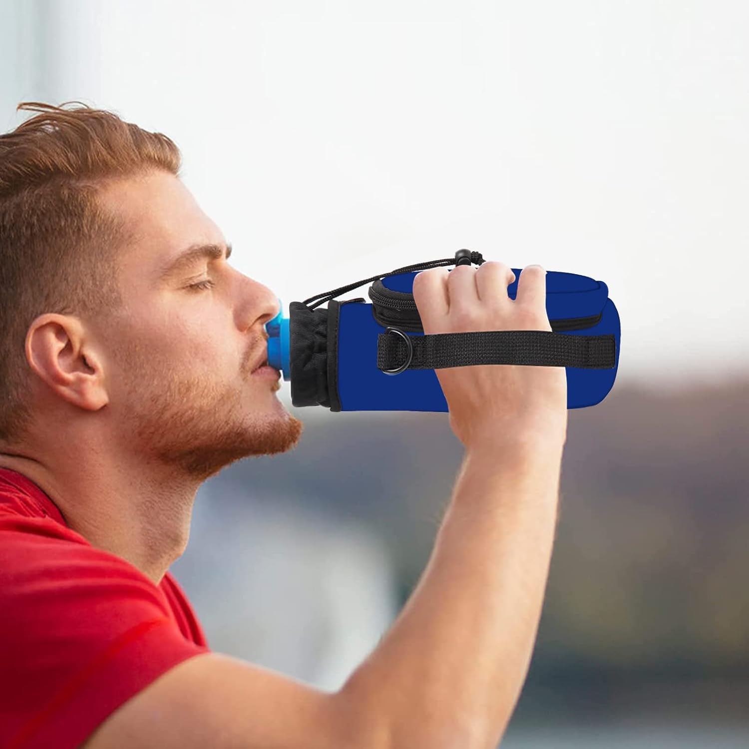 - GREAT FOR TEENS & ADULTS: Both adults and Kids can find great use in this AUPET water bottle carrier holder. Use it for walking,running,gym,cycling,hiking and more.with two zipper pockets for smartphone,cash,card keys and other small items.with the adjustable shoulder strap and the carring strap,it will fits all body types,you can wear over the shoulder, cross chest as a sling bag or just hand carring.<br/>