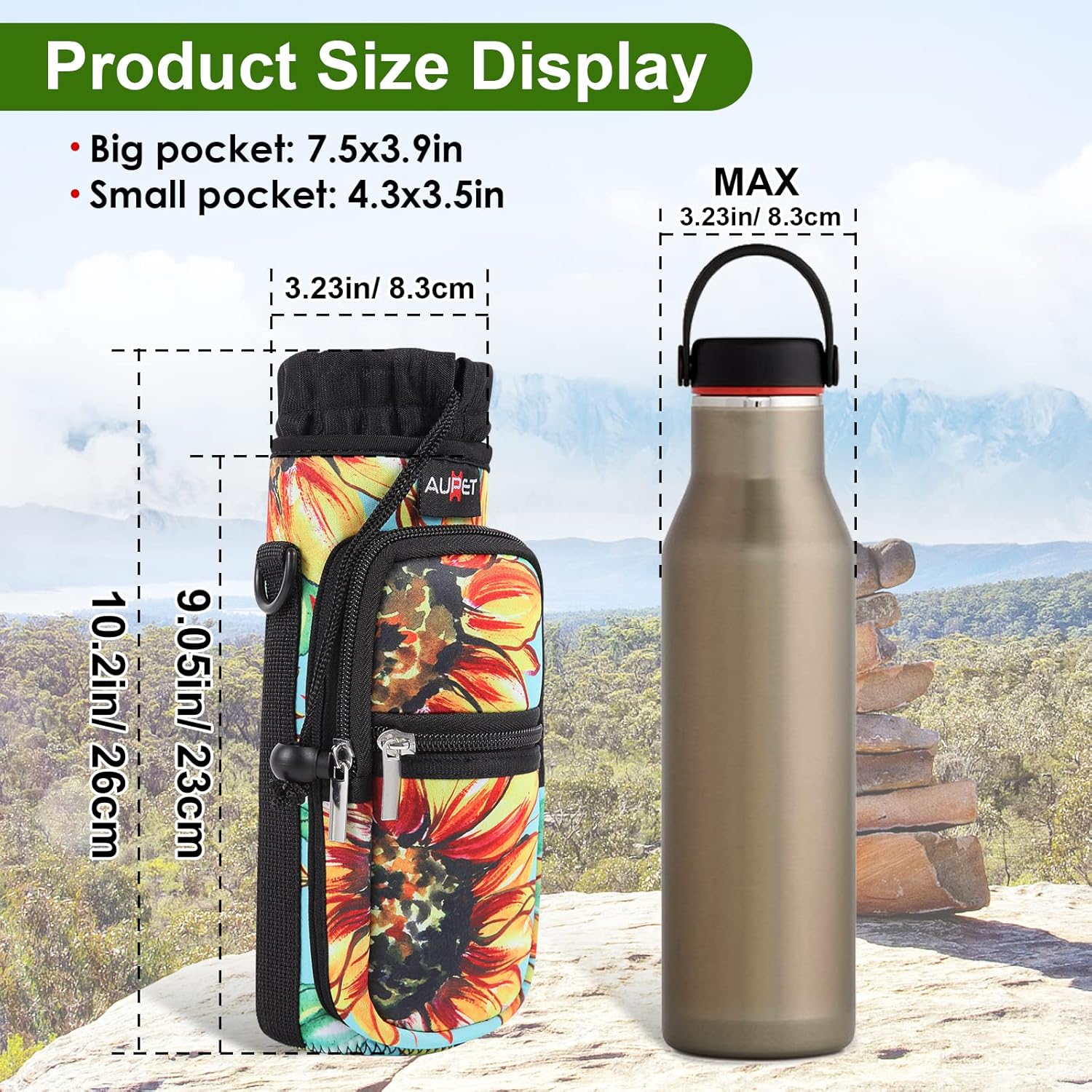 AUPET Water Bottle Sling Bag Sleeve Holder Carrier 25/32/40/64 oz,Insulated Crossbody Water Bottle Case Cover with Strap and Pockets for Men/Women Walking Hiking