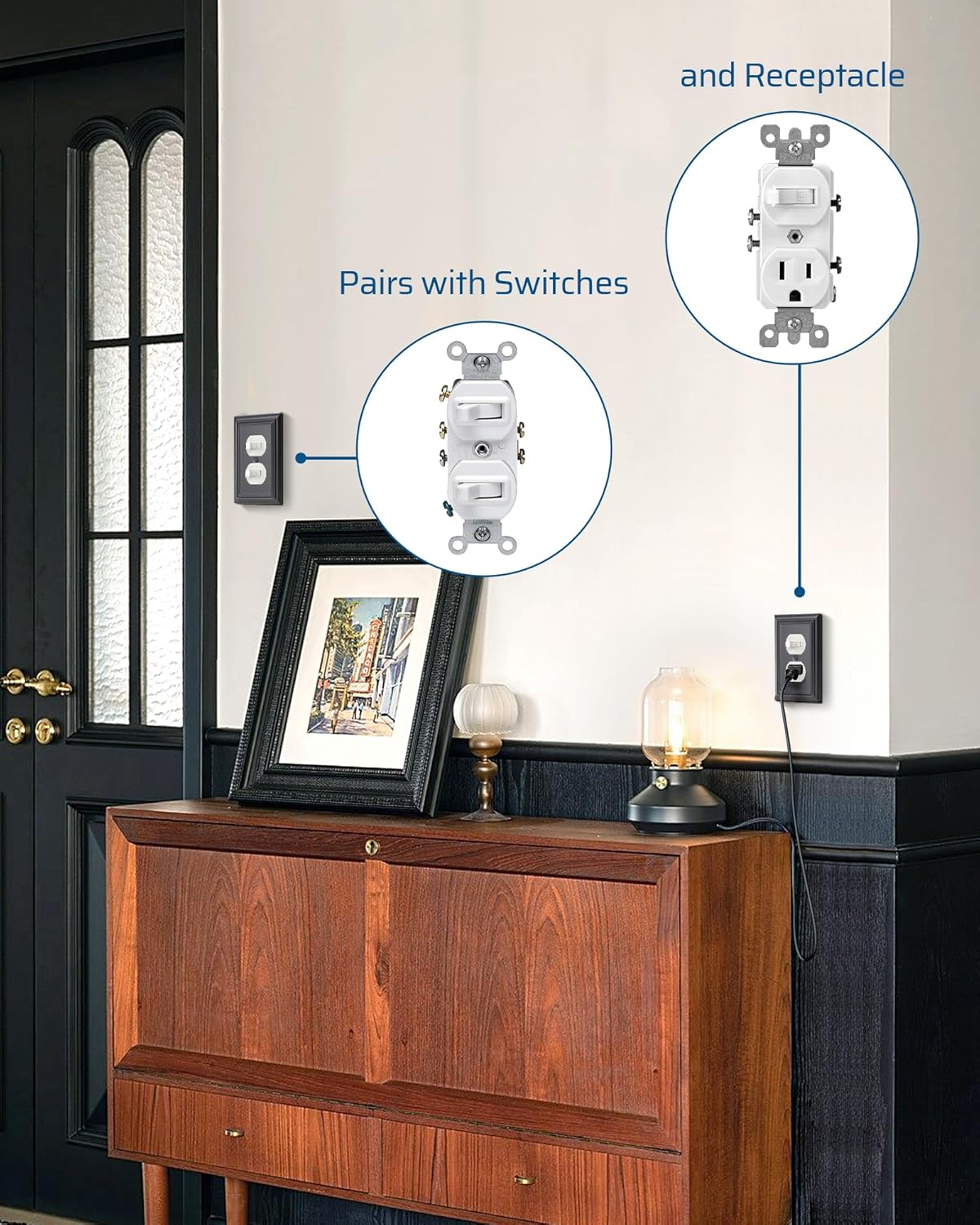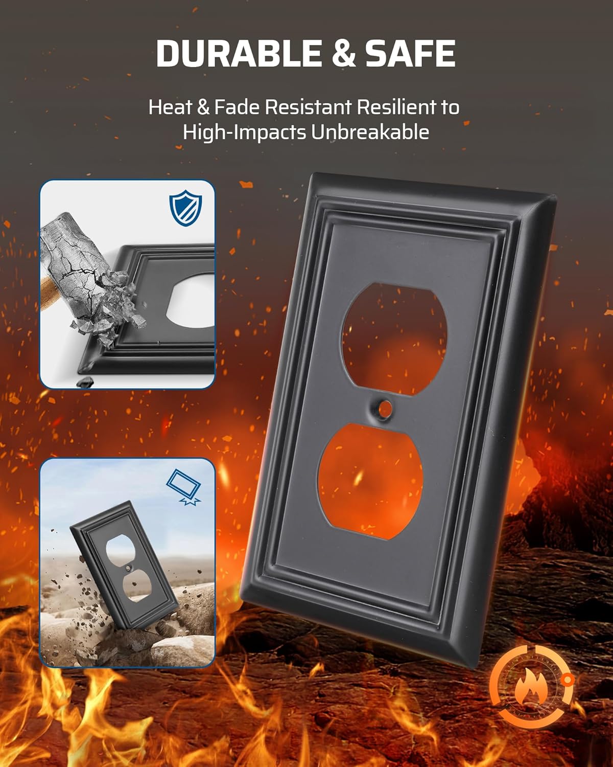 - [Modern Style] The black color complements the textured edges, adding a charming antique touch to your home; this electrical outlet covers wall plate are available in different formats, ideal for dimmer switch, toggle switch, outlet receptacls, GFCI outlet