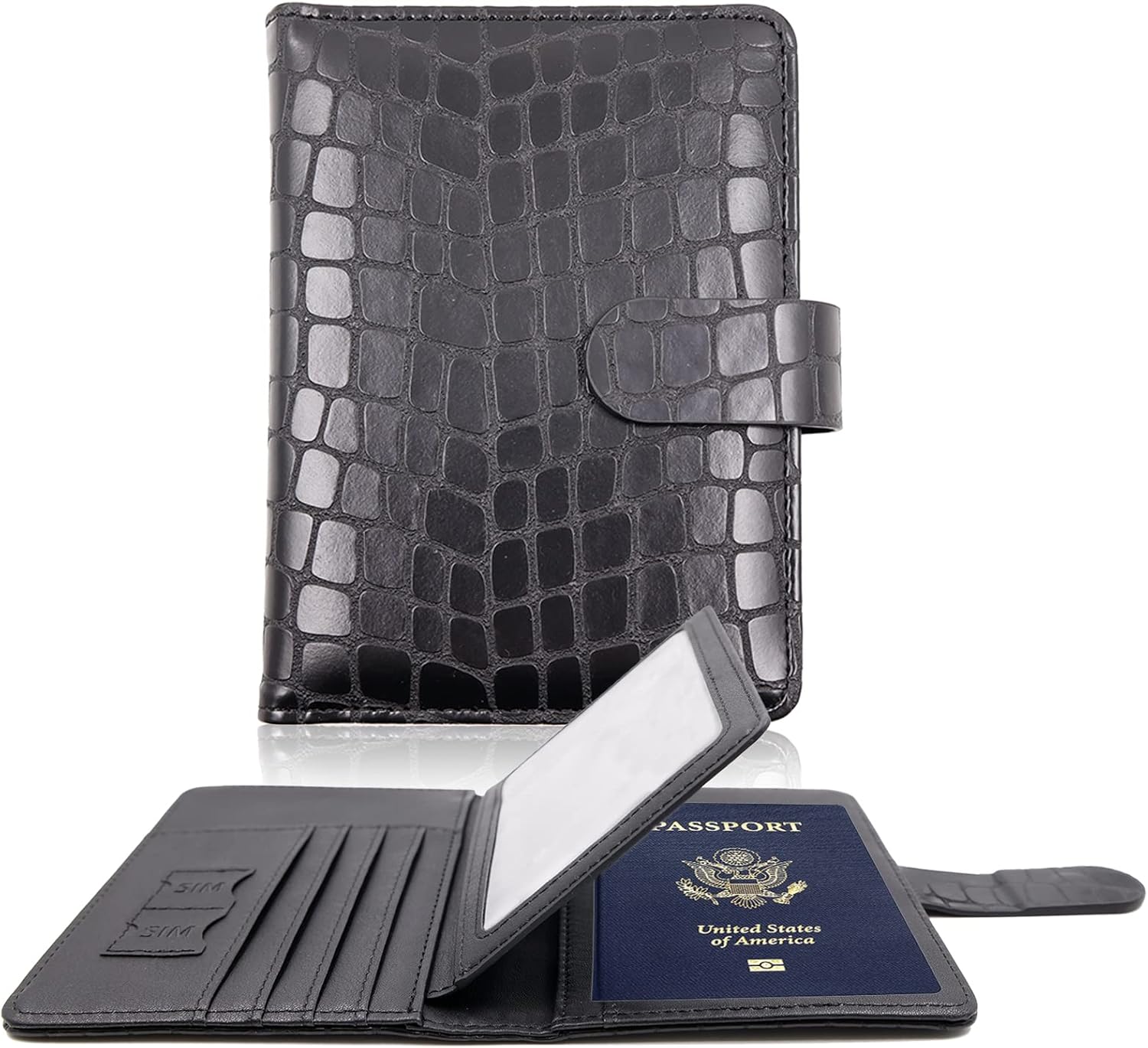 - 【Snap Button Closure and Security Protective】The passport holder with the hidden magnetic snap button closure design, which is safe and reliable to protect your travel items from being lost,to provide dual protection.Besides,RFID blocking shield material inside, Our passport case has a material engineered specifically to block 13.56 MHz or higher RFID signals and protect our important private information stored on your passport and credit cards from unauthorized scans.