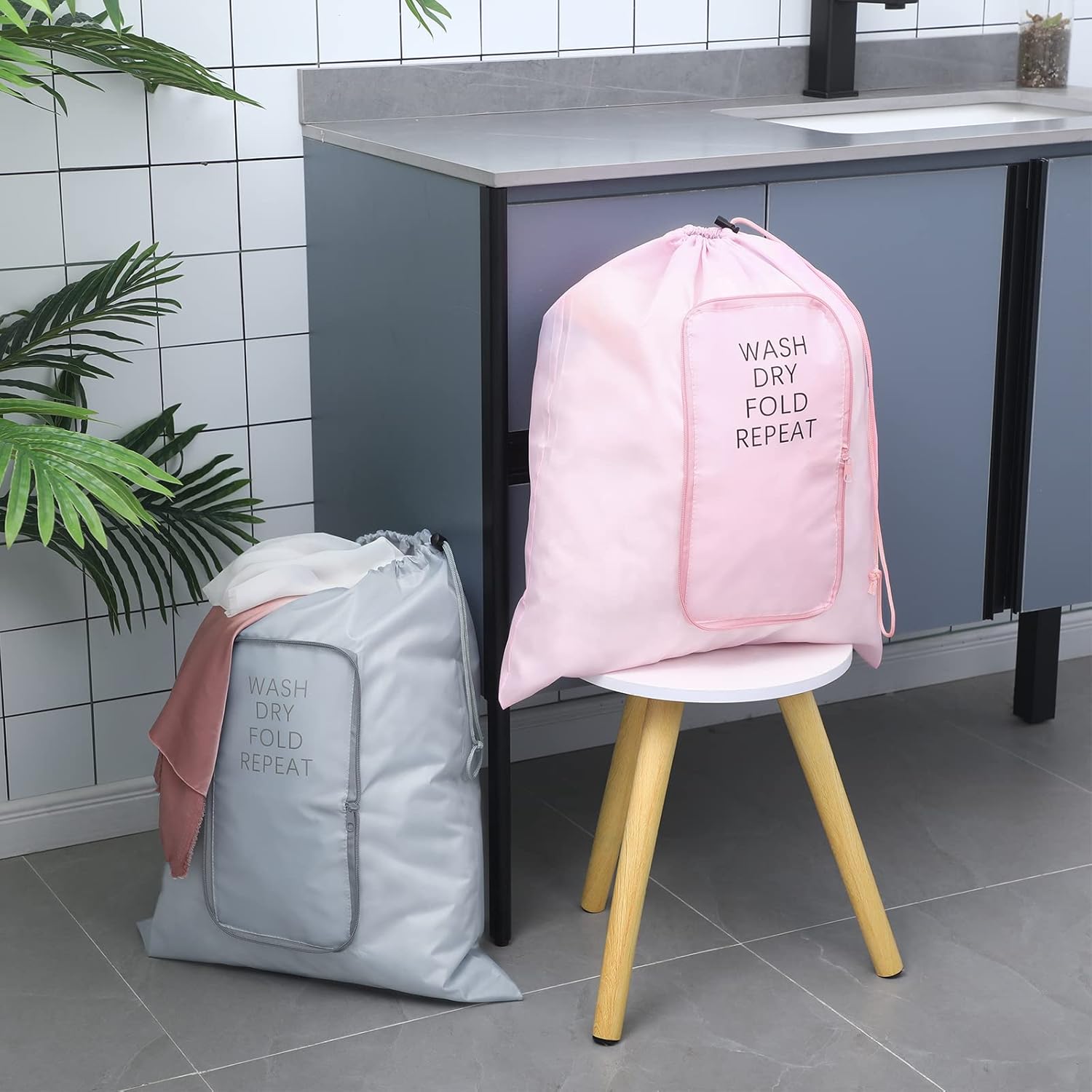 Boao 2 Pcs Travel Laundry Bag Washable Dirty Clothes Bag with Drawstring and Zipper for Suitcase, 22 x 18 Inch (Pink, Gray,Classic)