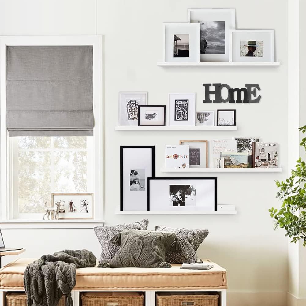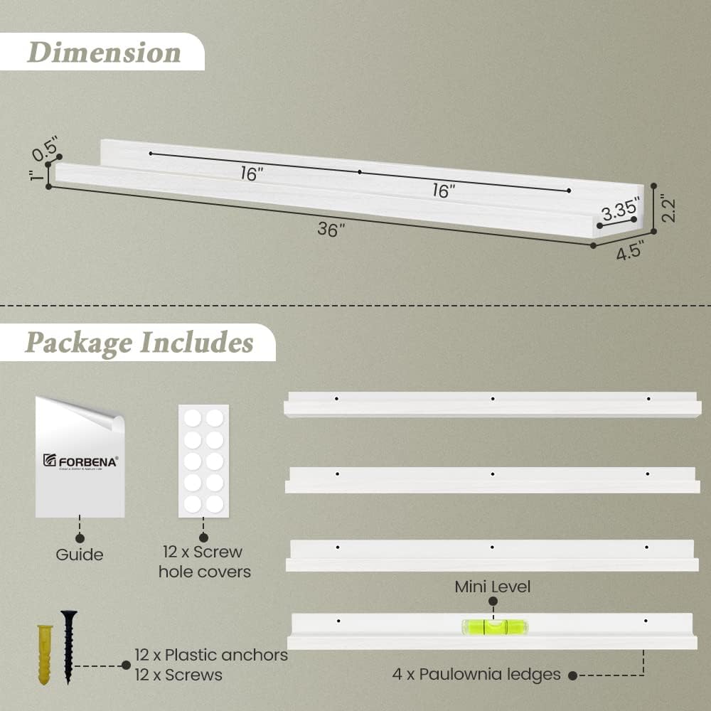 - ăEasy Installation & Breeze DisassemblyăThese modern & versatile floating shelves 36 inch come assembled in sets of 4. Easy to install when open carton box to hang picture shelves following instuction manual. When disassembling, just remove screws.