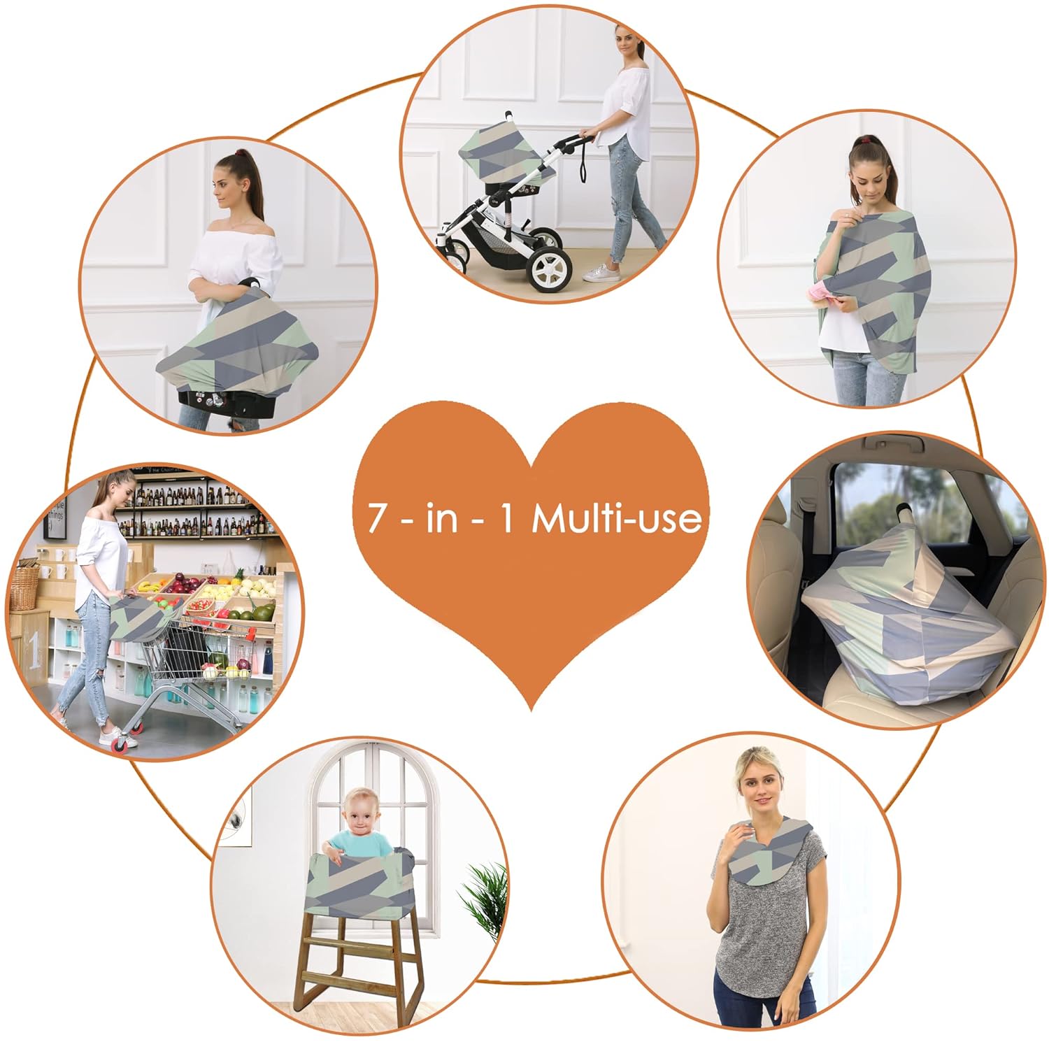- Multi-use nursing covers for babies - Can use as baby car seat cover, breastfeeding covers, carseat canopy, infant stroller sun protection covers, shopping cart cover, high chair cover, which is a must have for every mother!