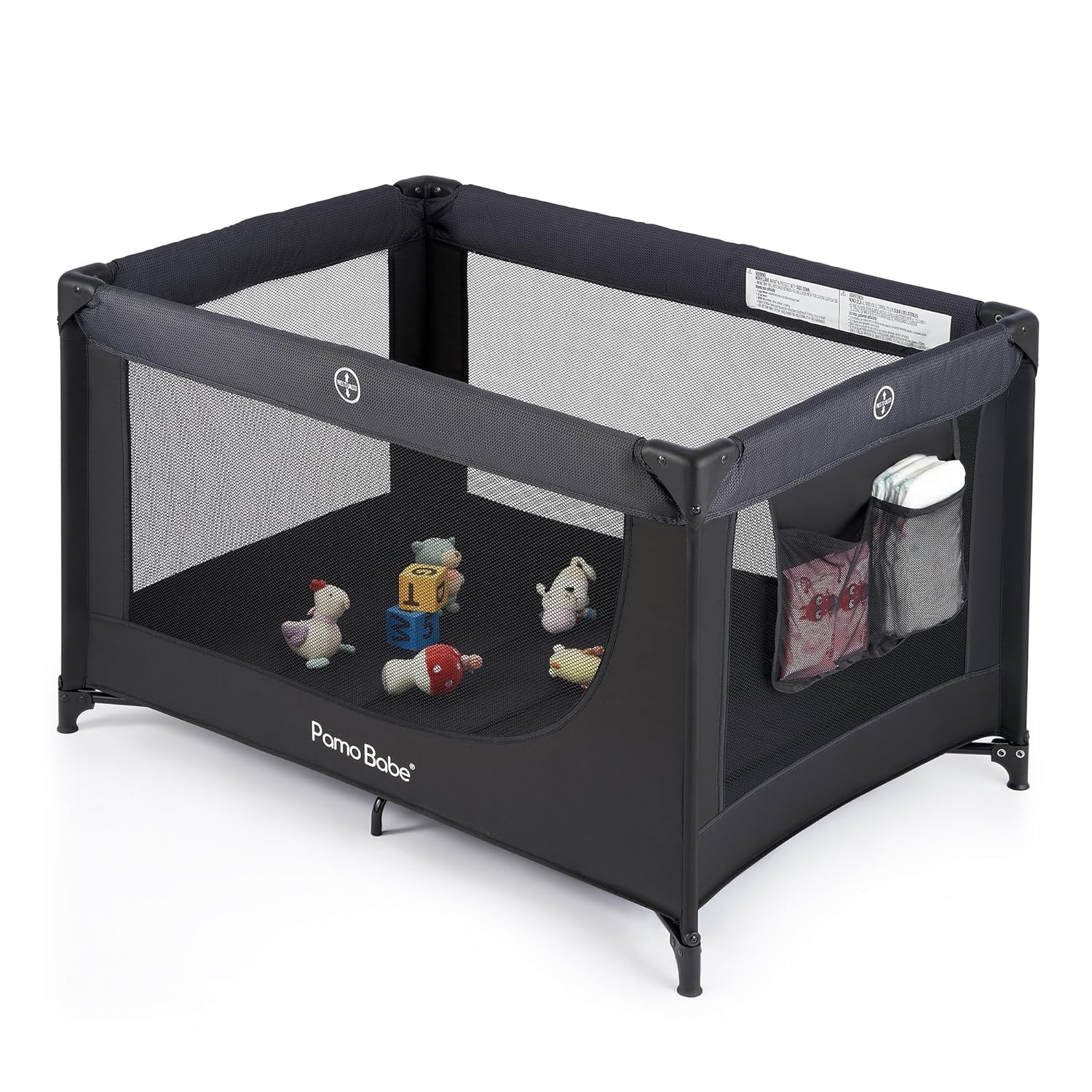 Pamo Babe Portable Crib Baby Playpen with Mattress and Carry Bag (Black)