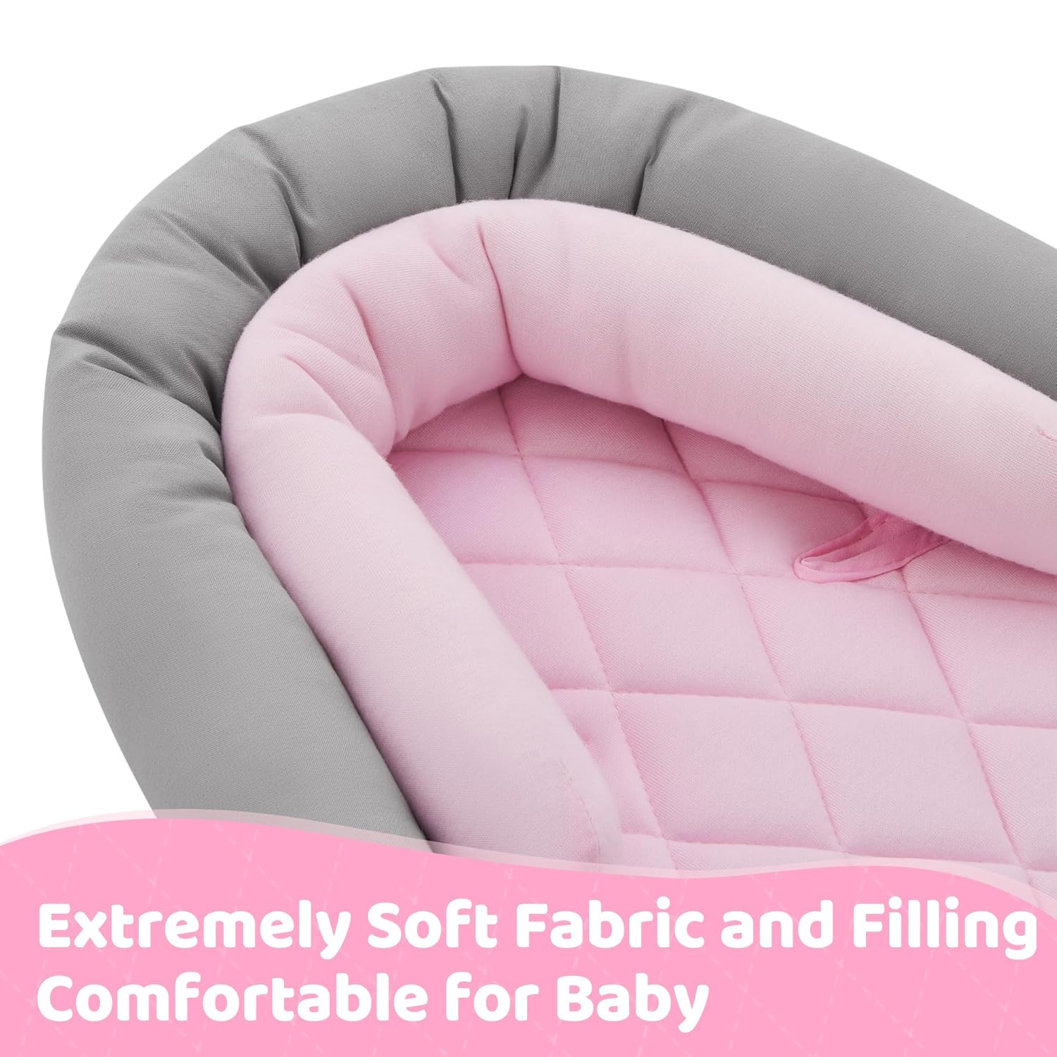 Pro Goleem Car Seat Head Support Infant, Soft Infant Car Seat Insert, 2 in 1 Carseat Head Support for Toddler, Perfect for Car Seat, Stroller, Swing, Bouncer, Pink and Gray