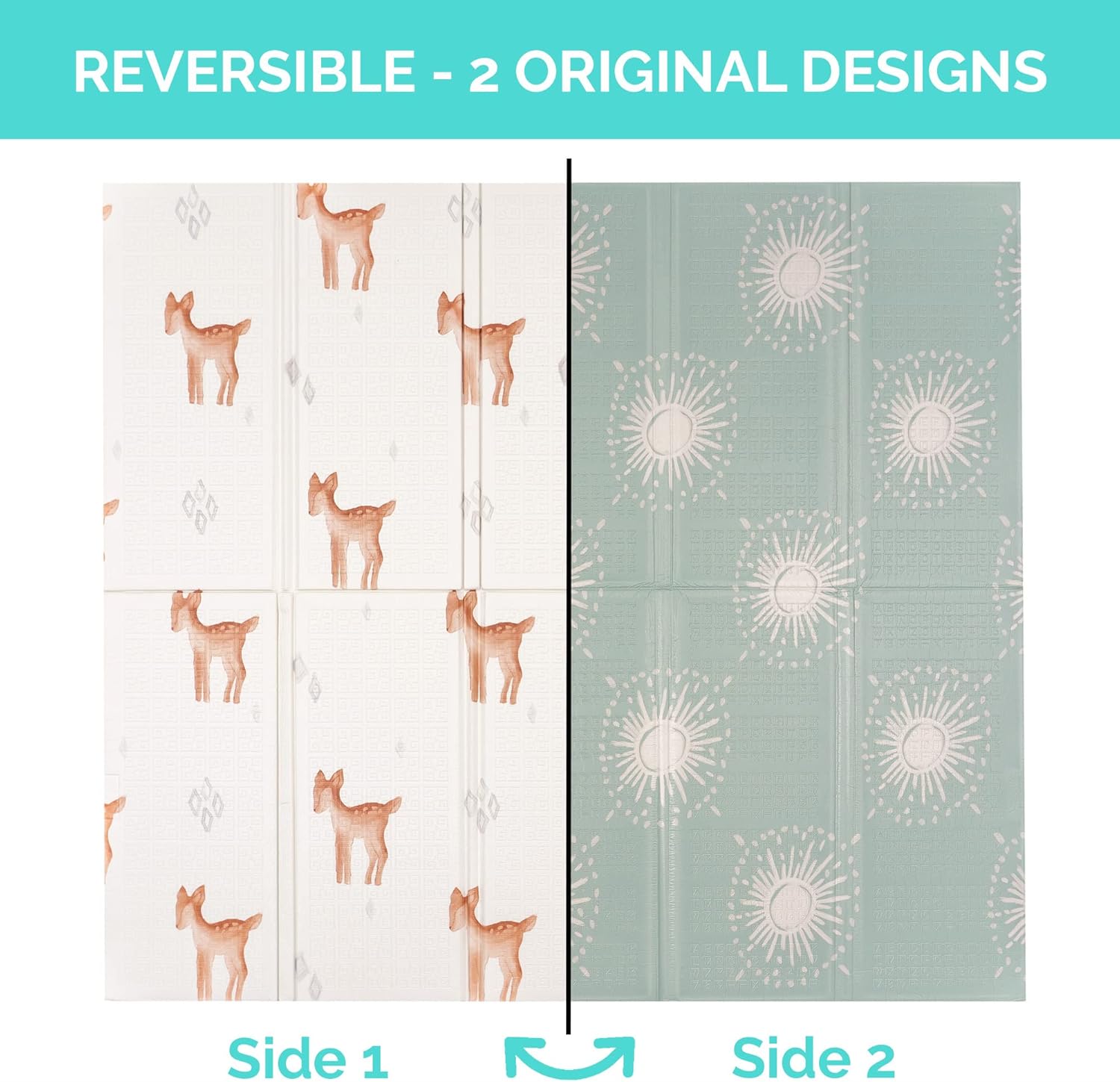 JumpOff Jo - Extra Large Waterproof Foam Padded Play Mat for Infants, Babies, Toddlers, Play Pens & Tummy Time, Foldable Activity Mat, 77 x 70 x 0.6 inches