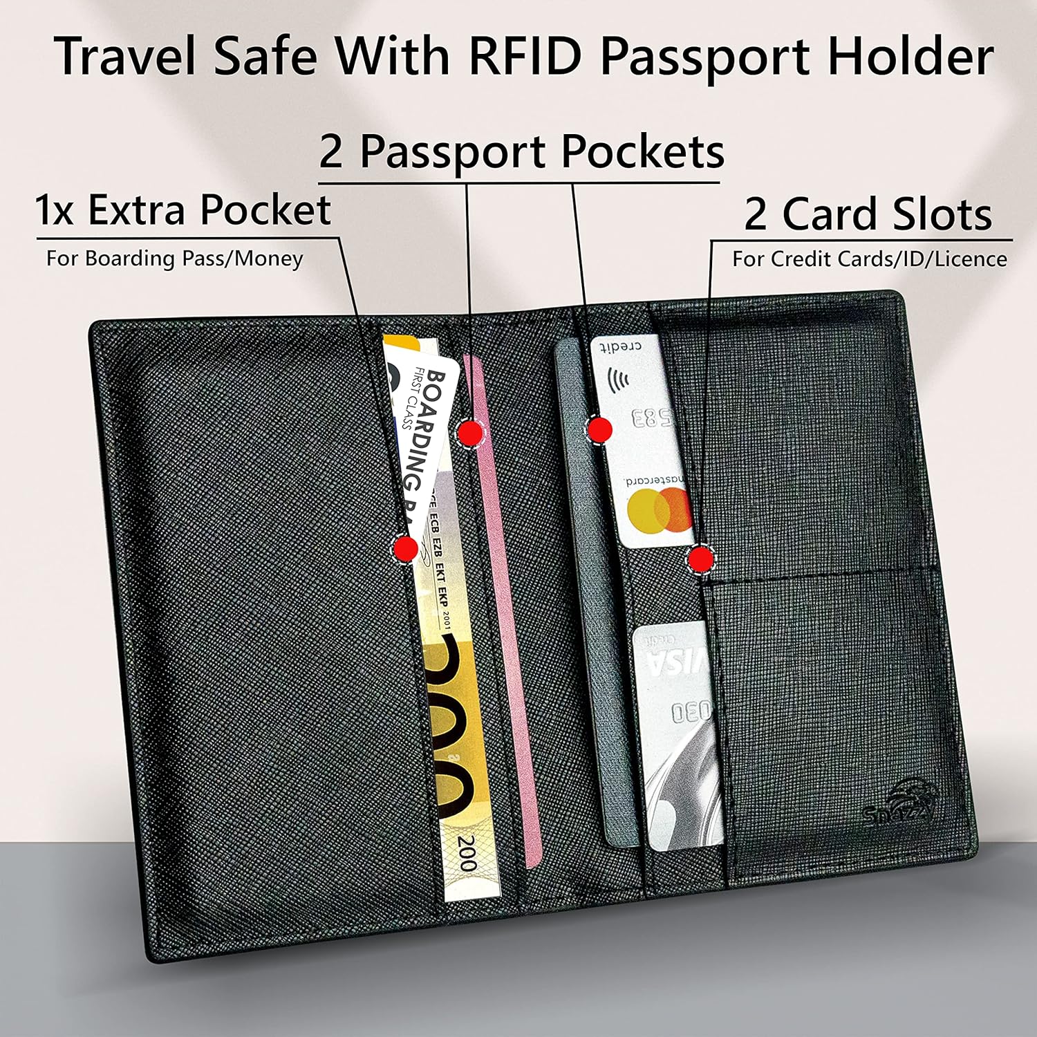 - ORGANISED STORAGE - Storage - Our document holder travel wallet is designed to keep all your travel documents safe and in one place. It has 5 compartments and securely holds 2 passports, making it great for family vacations or business trips.