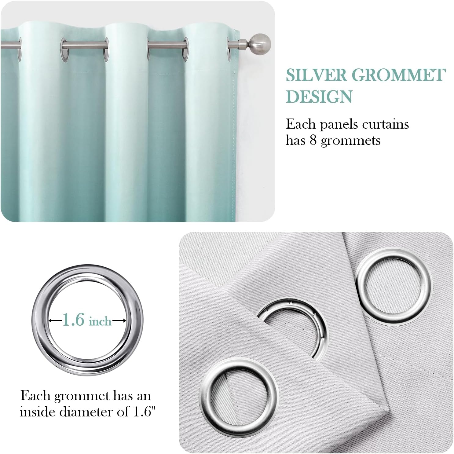 - ★PACKAGE MADE: Your package includes two gradient curtain panels. Each panel measures 52 inches in width, a total width of 104 inches. 8 silvery grommets (1.6-inch inner diameter) of each panel make the blackout curtains easy to install and slide.