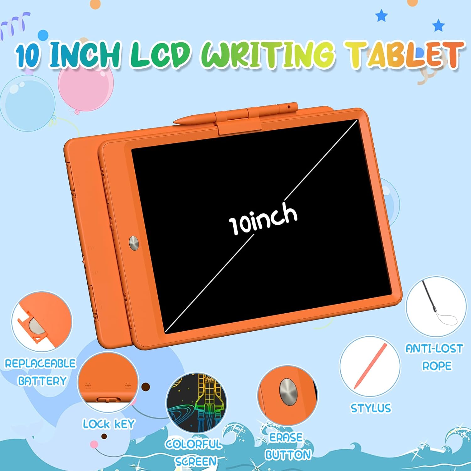 Drawing Tablets for Kids 10 Inch LCD Writing Tablet for Kids Reusable Drawing pad Educational and Learning Toys for Boys Girls(Orange)
