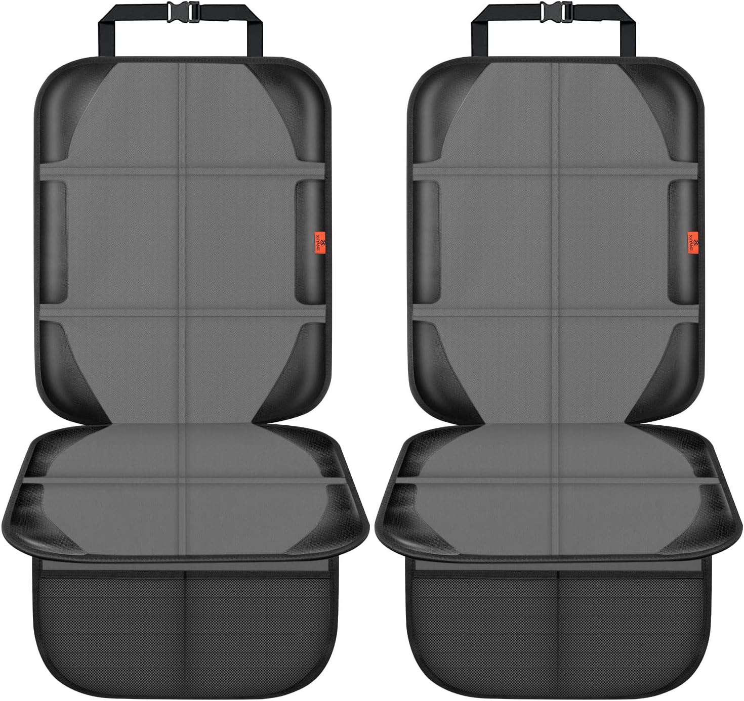 Car Seat Protector,2 Pack Automotive Seat Protectors Baby Carseat Pad Waterproof & Durable 600D Fabric for Child Baby Car Seat Mat Vehicle Pet Cover 2 Storage Pockets (2 Pack Gray)