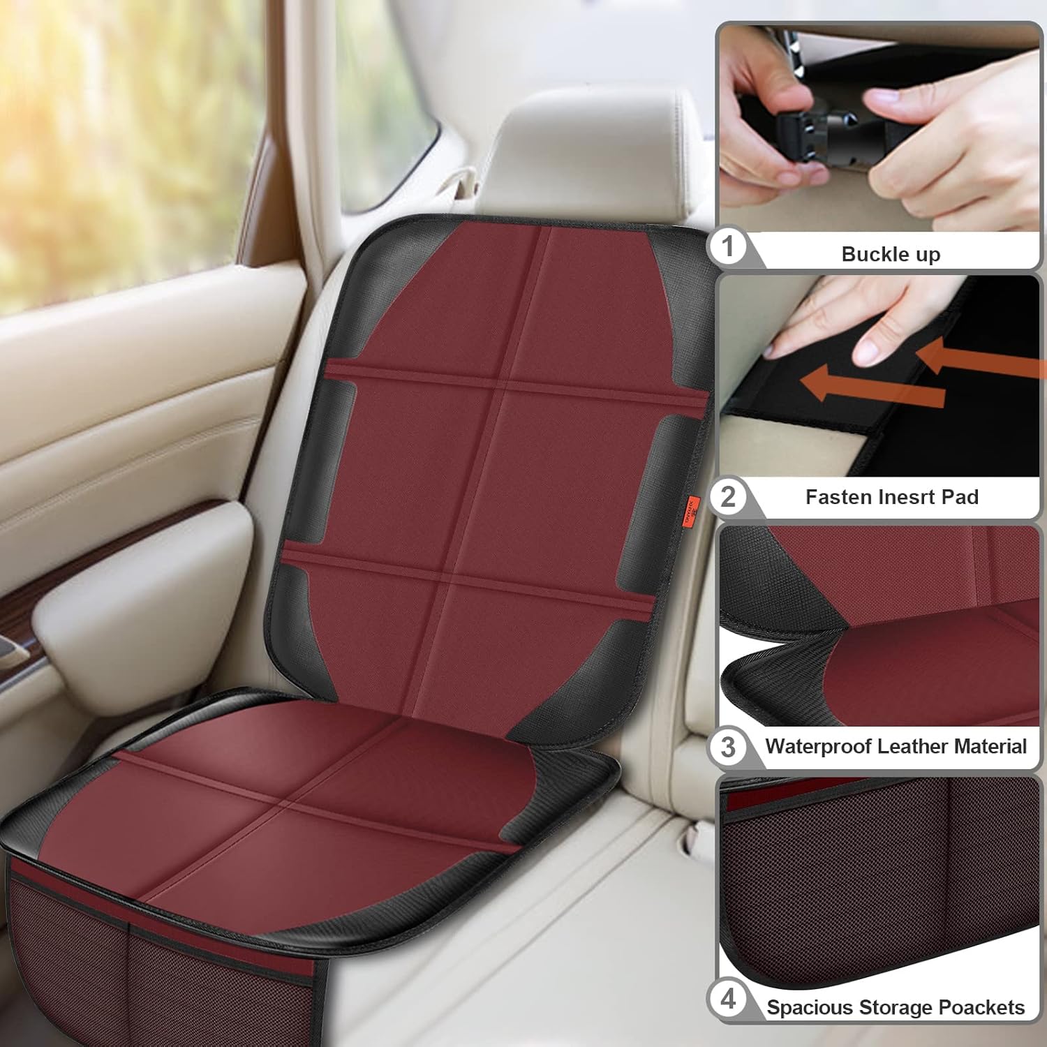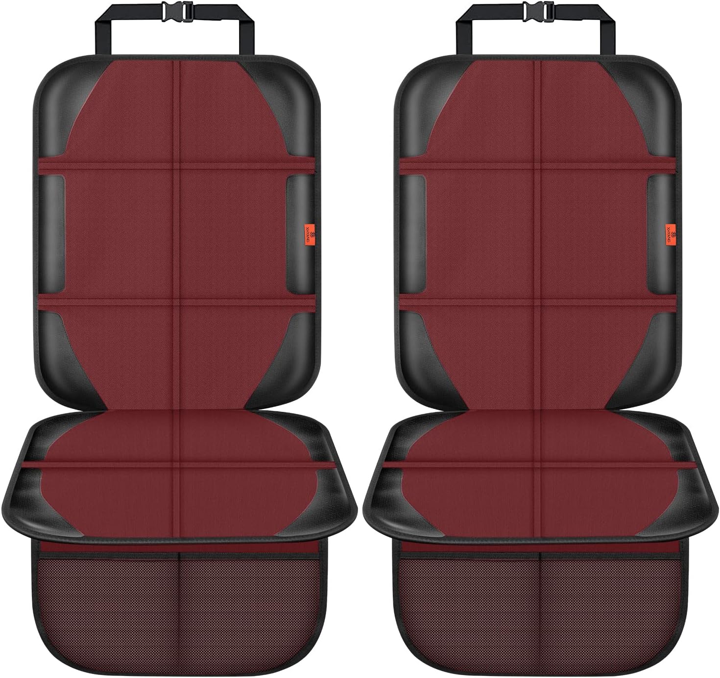 Car Seat Protector,2 Pack Automotive Seat Protectors Baby Carseat Pad Waterproof Durable 600D Fabric for Child Baby Car Seat Mat Vehicle Pet Cover 2 Storage Pockets (Wine Red)