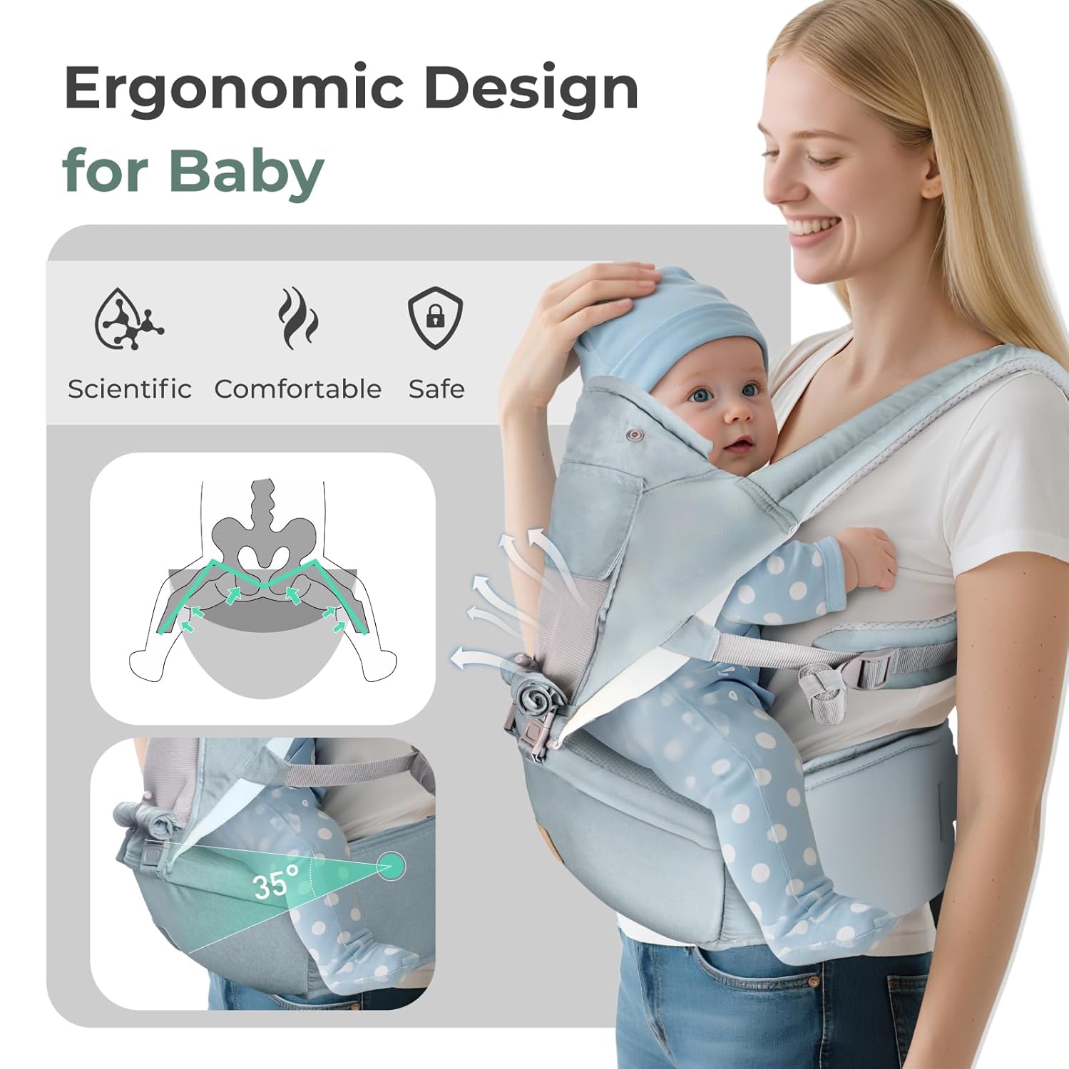 - 6-IN-1 VERSATILE DESIGN:This baby carrier grows with your little one (0-36 months)! Switch between 6 carry modes—front, back, hip, and more—thanks to detachable straps + adjustable hip seat. Perfect for feeding, travel, or chores, all while keeping your hands free.