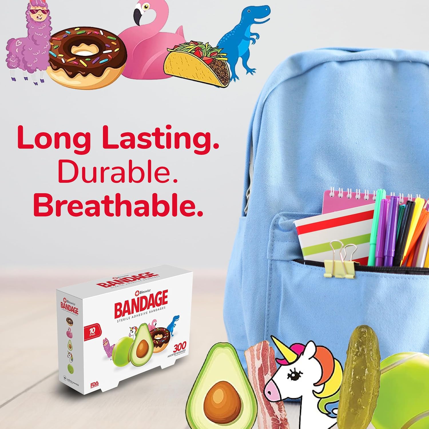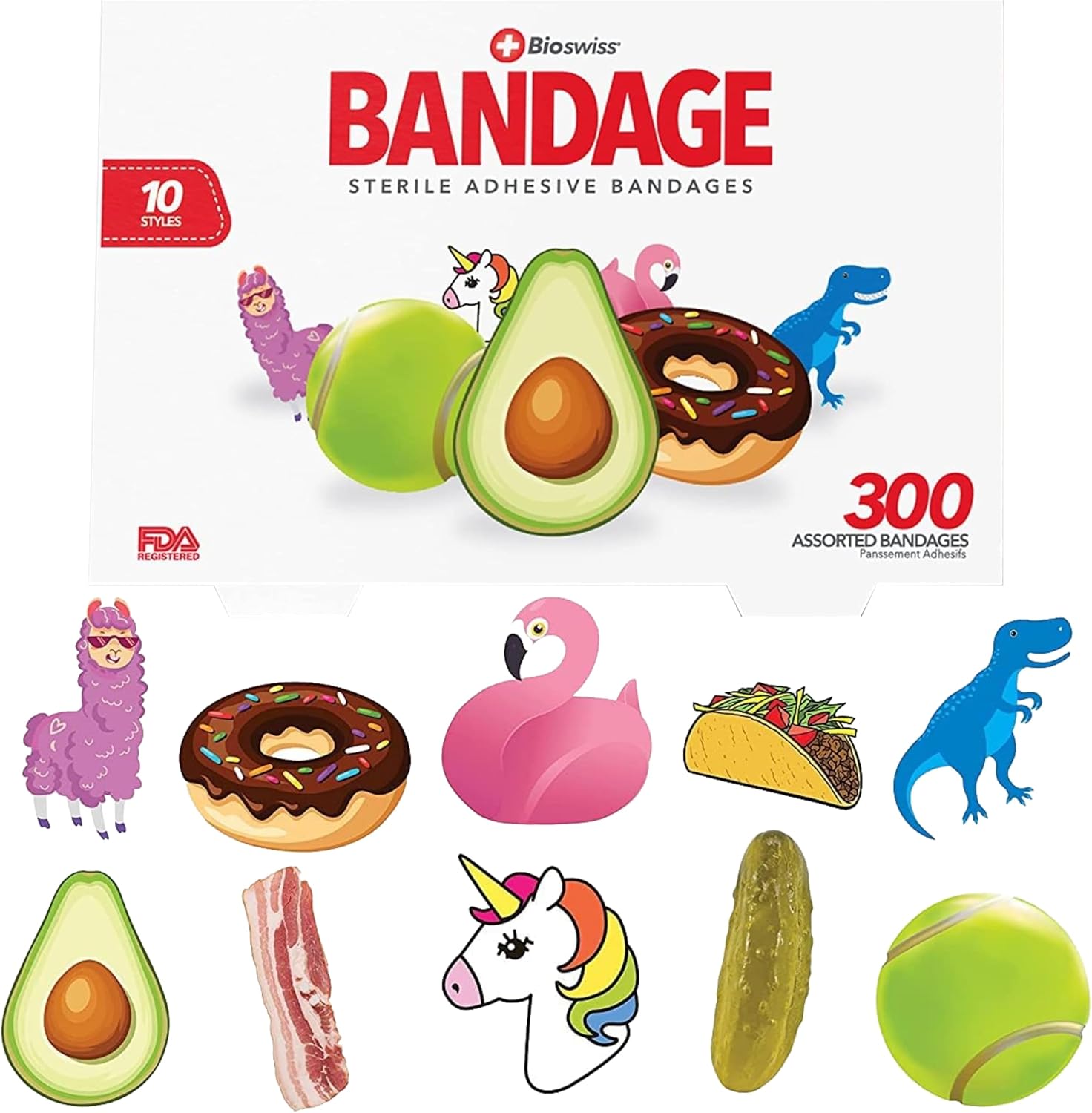 BioSwiss Bandages, Assorted Animal, Fun, and Food Shaped Self Adhesive Bandage, Latex Free Sterile Wound Care, 300 Count